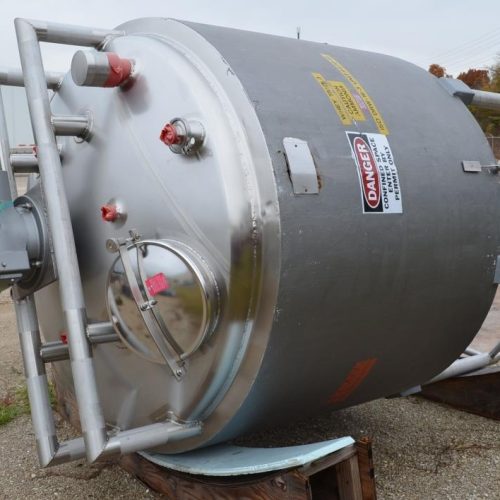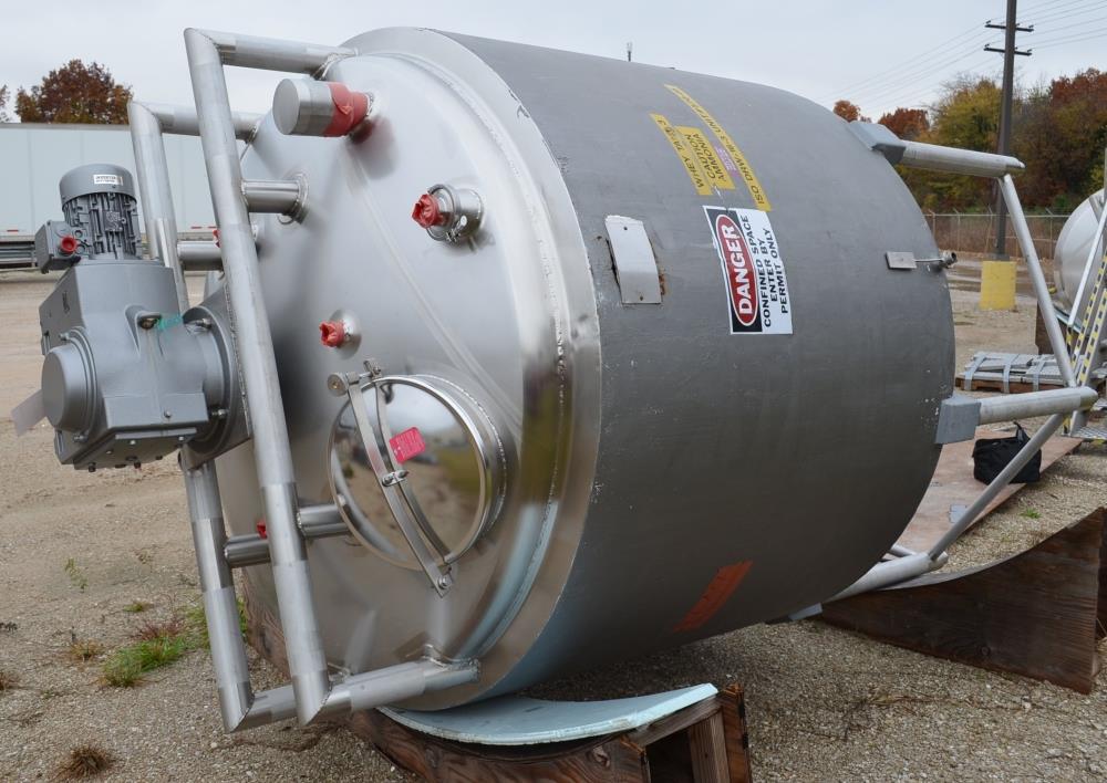 1,000 Gallon Damrow S/S Sweep Scrape Agitated Jacketed Dome Top Dish Bottom Tank NEW Dome Top and Agitator Drive. S/S Interior, C/S Exterior Jacket. Top Mounted Sweep Scrape Agitator. 62 in Straight Side, 72 in Exterior Diameter, 18 in Diameter Top Entering Manway with Hinged Cover, (3) 2 in Diameter Tri Clamp Top Inlets, (1) 2.5 in Diameter Tri-Clamp Top Inlet, Top Vent, 3 in Diameter Tri Clamp CBO, 5 in Diameter Bottom Outlet with Rosemount Temperature Transmitter, Nord Drive Systems 5 HP TEFC Drive Motor, 230/460 V, 3 Ph, 60 Hz, 1725 RPM, (6) 36 in H S/S Legs.