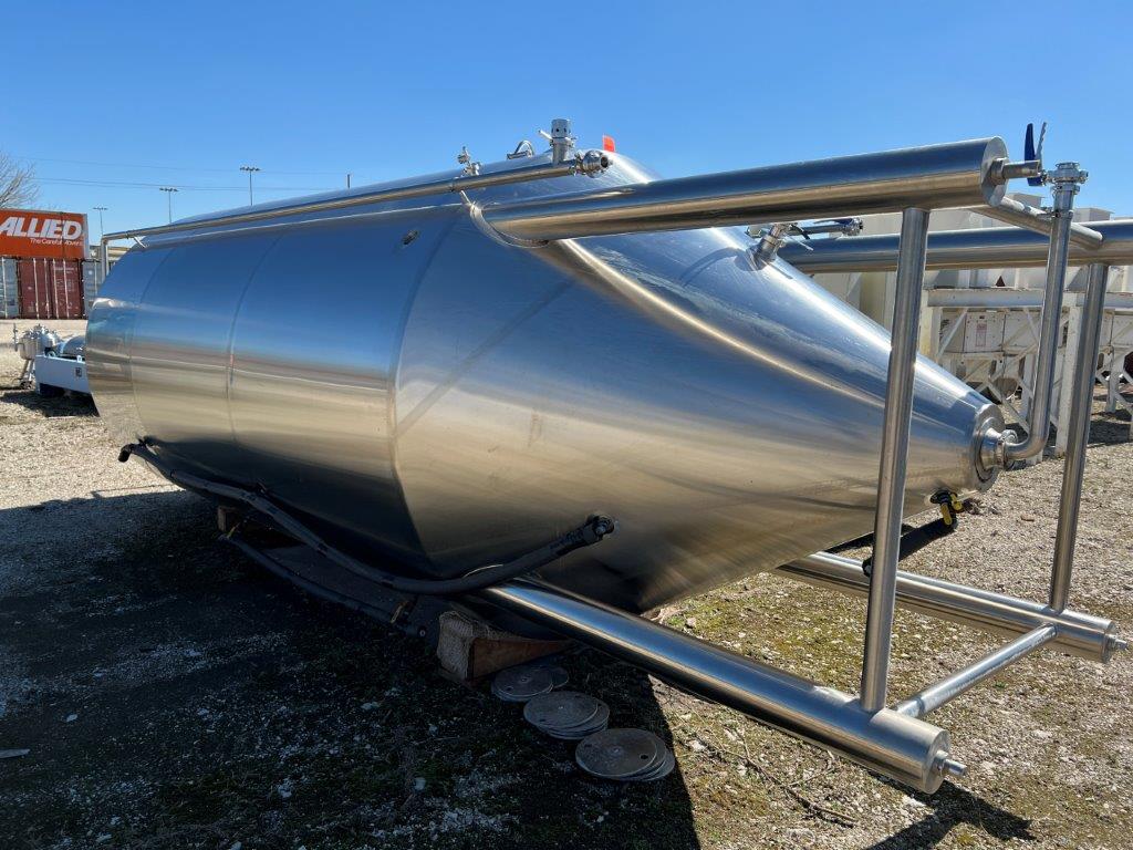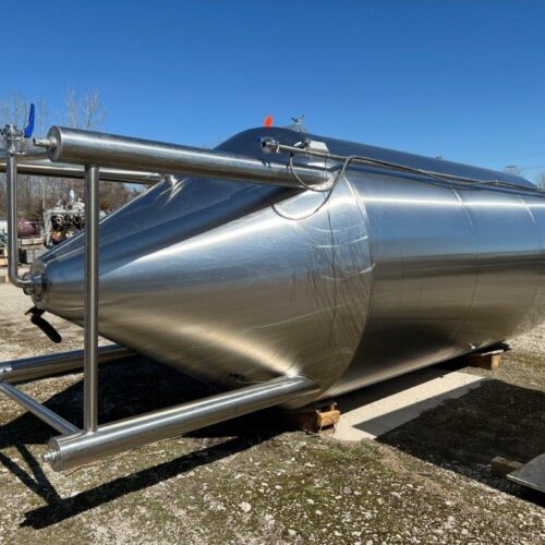 120 Barrel Capacity 304 S/S Vertical Fermenter Tank with 15 PSI Jacket Operating Pressure, Dish Top, Cone Bottom, Sampling Port, 16 in Diameter Manway. Openings Top: 6″, 3″, (2) 2″, Side: 3″. 4″ Diameter Center Bottom outlet, Reduced to 2″ Discharge with Valve, 10″ Discharge Height. Mounted on (4) S/S Legs.