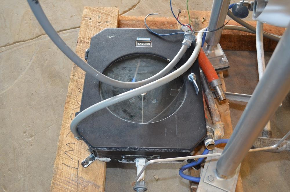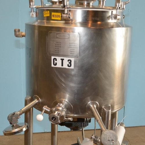 15 Gallon Walker Model PZP S/S Bottom Turbine Agitated Jacketed Pressure Tank with Fixed Interior Baffle. 18 1/2 in Interior Diameter, 16 3/4 in Interior Depth, Slope Bottom, Heating and Cooling Jacket, Vessel Maximum Working Pressure 15 PSIG at 250 Degrees F, Heating Jacket Maximum Working Pressure 60 PSIG at 250 Degrees F, Cooling Jacket Maximum Working Pressure 100 PSIG at 100 Degrees F. 1 HP Bottom Mounted Agitator, Fixed Interior Baffle, S/S Hinged Clamp Down Single Cover, (2) 3 in Diameter Sanitary Threaded Top Inlets, (1) 2 in Diameter Tri-Clamp Top Inlet, (1) 1 1/2 in Diameter Tri-Clamp Top Inlet, (1) 1 in Diameter Sanitary Threaded Side Top Inlet, 1 in Diameter Tri-Clamp Side Bottom Outlet with Manual Valve, 33 in Discharge Height, 2 Temperature Probes, T304 S/S. (4) 31 in H S/S Legs, (4) Weigh Cells with Kistler Morse Digital Controls, Taylor Chart Recorder, 180 Volt DC Motor.