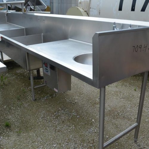 16 ft L Two Compartment S/S Sink with Drain Shelves. 36 in L x 27 in W x 13 in D Sink Wells, 18 in Diameter Disposer Sink with Hot and Cold Water Faucet, Salvajor Disposal Controls, Overhead Shelf