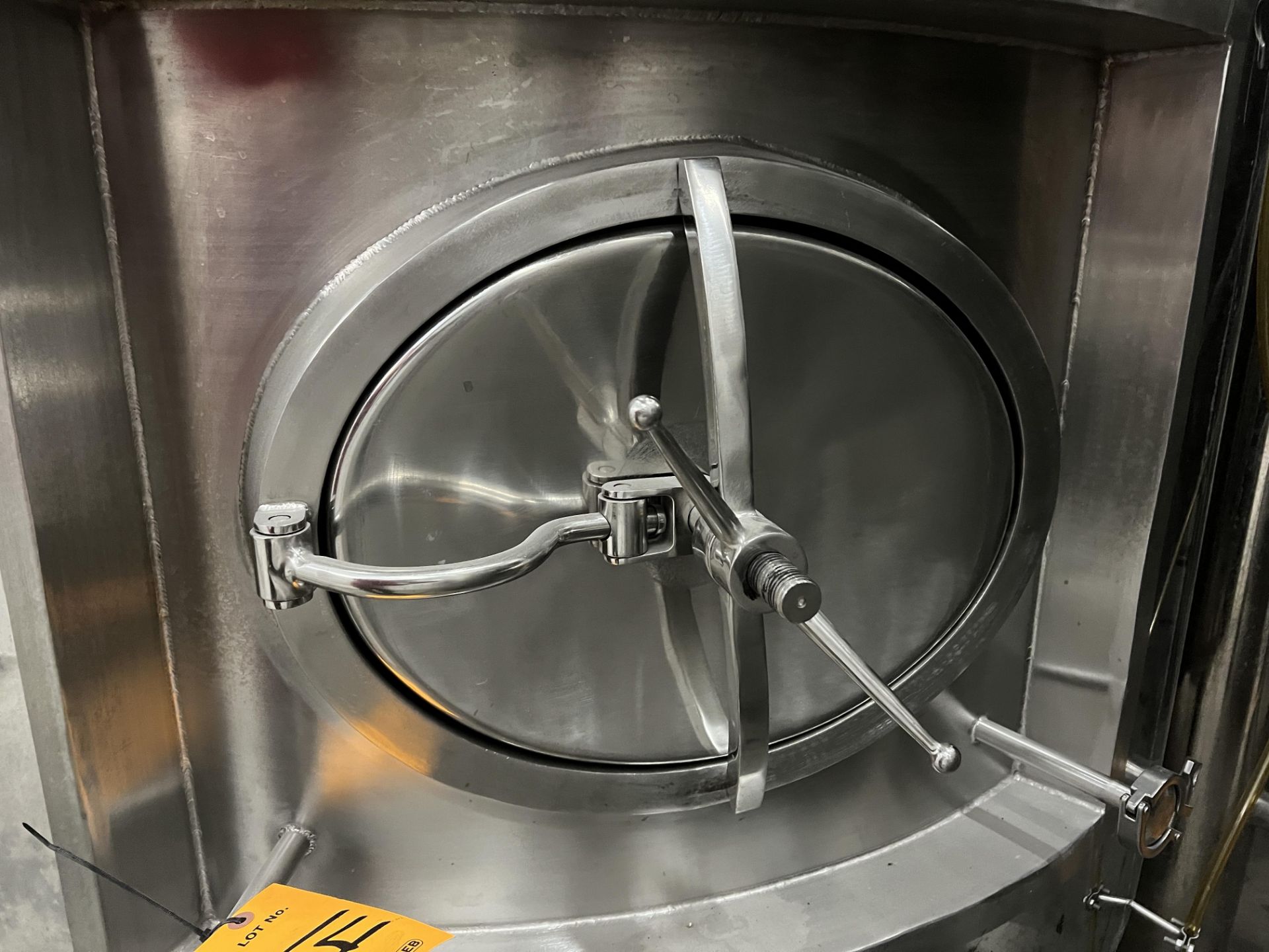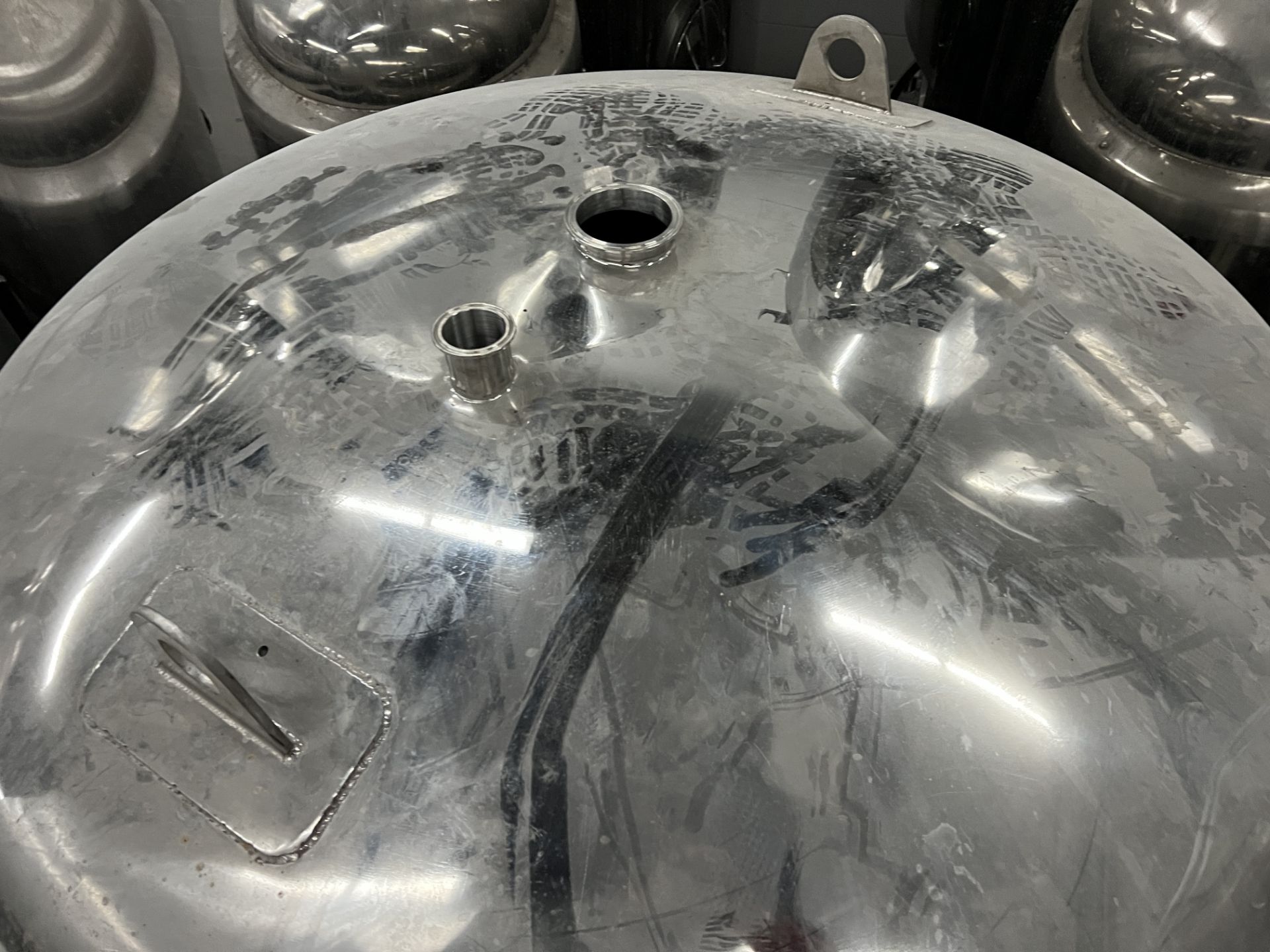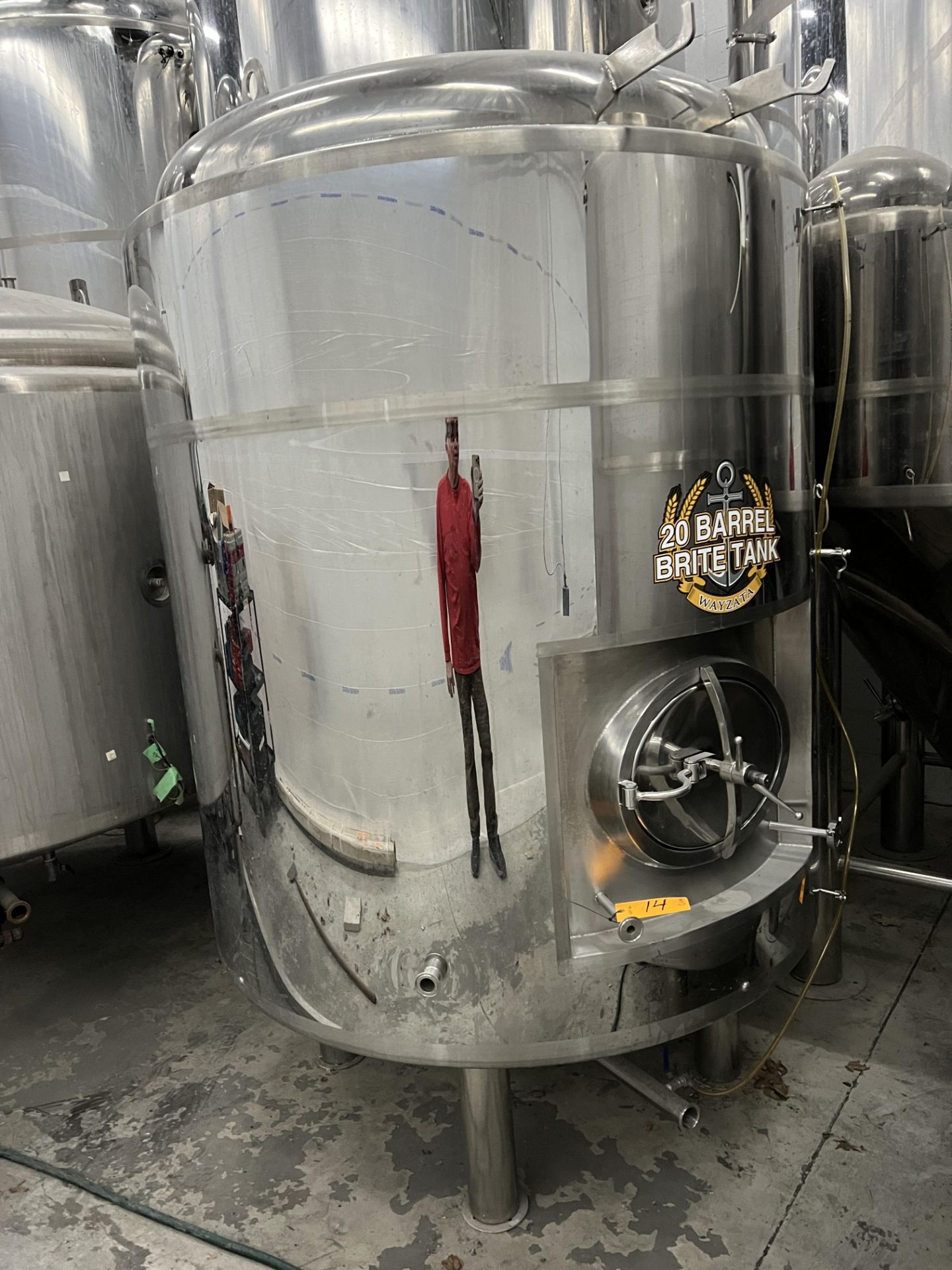 20 BBL DYE Brite Tank, Stainless Steel, Full Glycol Jacket, Front Manway, 62 in. dia, 65 in. Sidewall, 100 in. Tall Overall