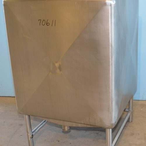 200 Gallon S/S Square Single Wall Open Top Slope Bottom Tank. 35 in W x 35 in L x 39 in D, 27 in x 27 in Open Top. 2.5 in Diameter Tri-Clamp Top Inlet, 3 in Diameter Top Vent Pipe, 2.5 in Diameter Tri-Clamp Bottom Outlet, 14 in Discharge Height, 2.5 in Internal Pipe with Bottom Outlet, (4) 16 in H S/S Legs.