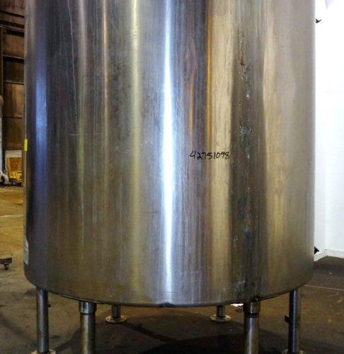 2,000 Gallon 304 Stainless Steel Vertical Single Wall Tank. 84 in Diameter x 80 in straight side. Dished top, coned bottom. Openings top 2 in, 4 in, 18 in man way with cover, side 2 in. 3 in Tri-clamp center bottom outlet. Mounted on 6 stainless steel legs, approximate 16 in discharge height.