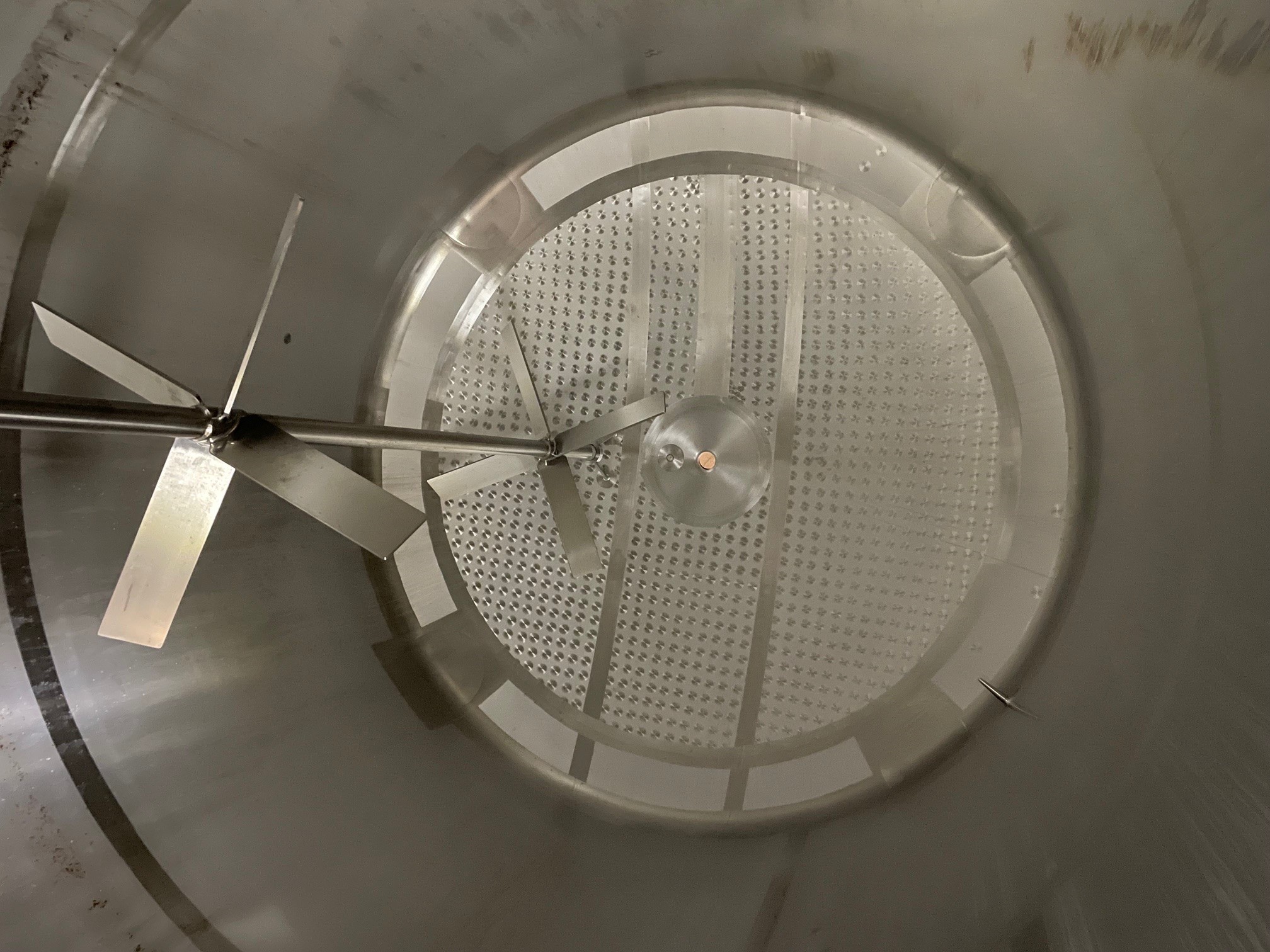2,500 Gallon DCI Vertical S/S Jacketed Agitated Tank. Jacketed on Lower Side Wall Only. Dome Top with Manway, Cone Bottom with 2 in Discharge. 316L Stainless Steel Interior. Offset Vertical Agitation, Dual Sprayball. Stainless Steel Legs with Adjustable Pads. Dimension 88 in Diameter x 183 in Height.