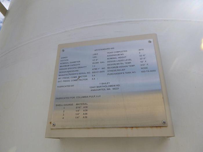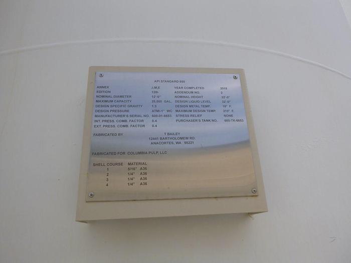 25,500 Gallon A36 Steel Tank 32′ Tall 12′ Diameter (Eight Available)