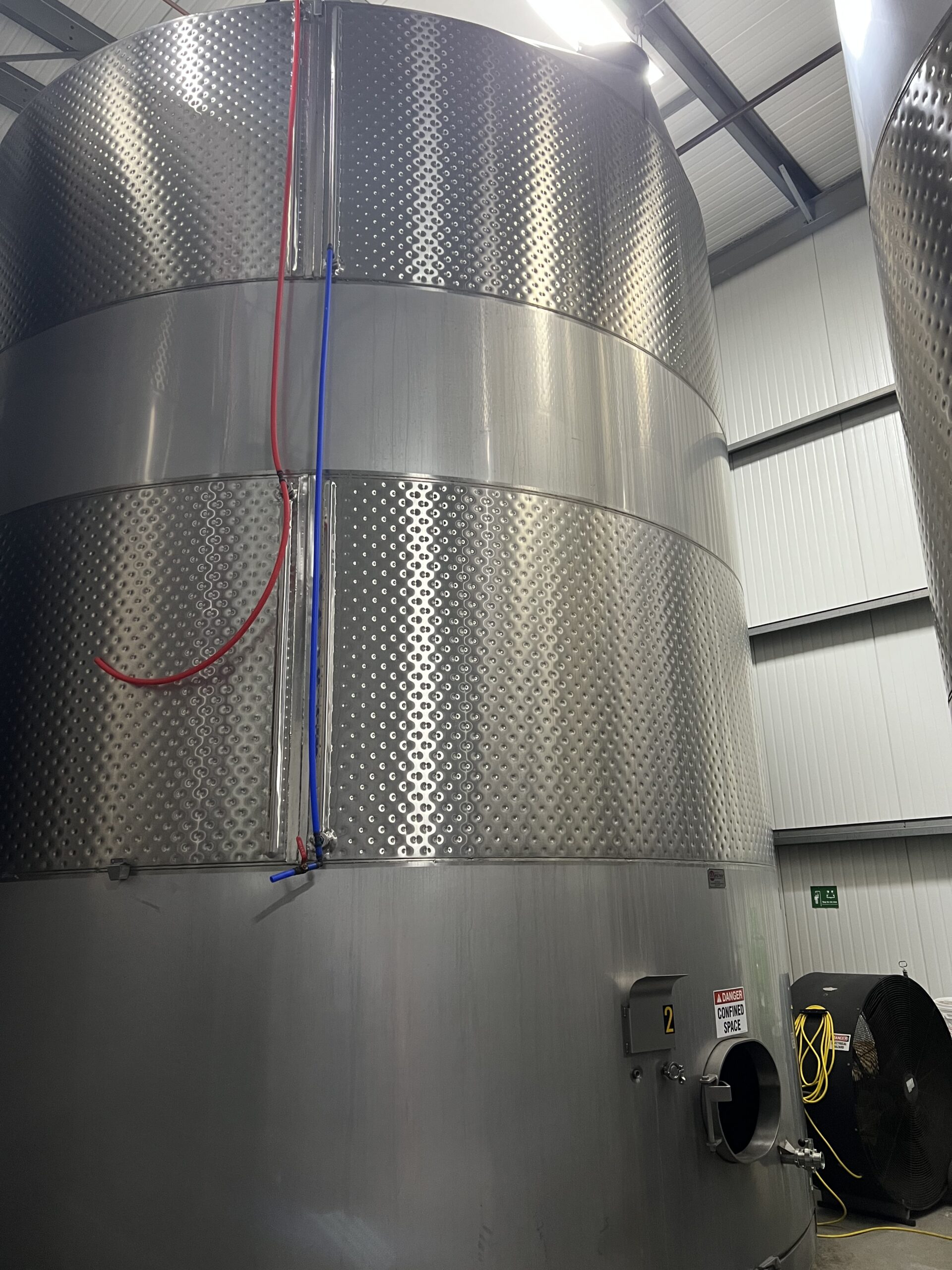 26,000 Gallon Westec S/S Vertical Jacketed Storage Tank. Truncated Top and Flat Sloping Bottom. 304-2B Stainless Steel. 18 in Diameter Manway. 12 GA Tank Body. 19 GA 250 PSI Glycol Dimple Jackets. 2 in Diameter Tri-Clamp Discharge. 1 in Tri-Clamp Sample Port. (4) Lifting Lugs. (5) S/S Legs. Total Tank Capacity 26,383 Gallons.