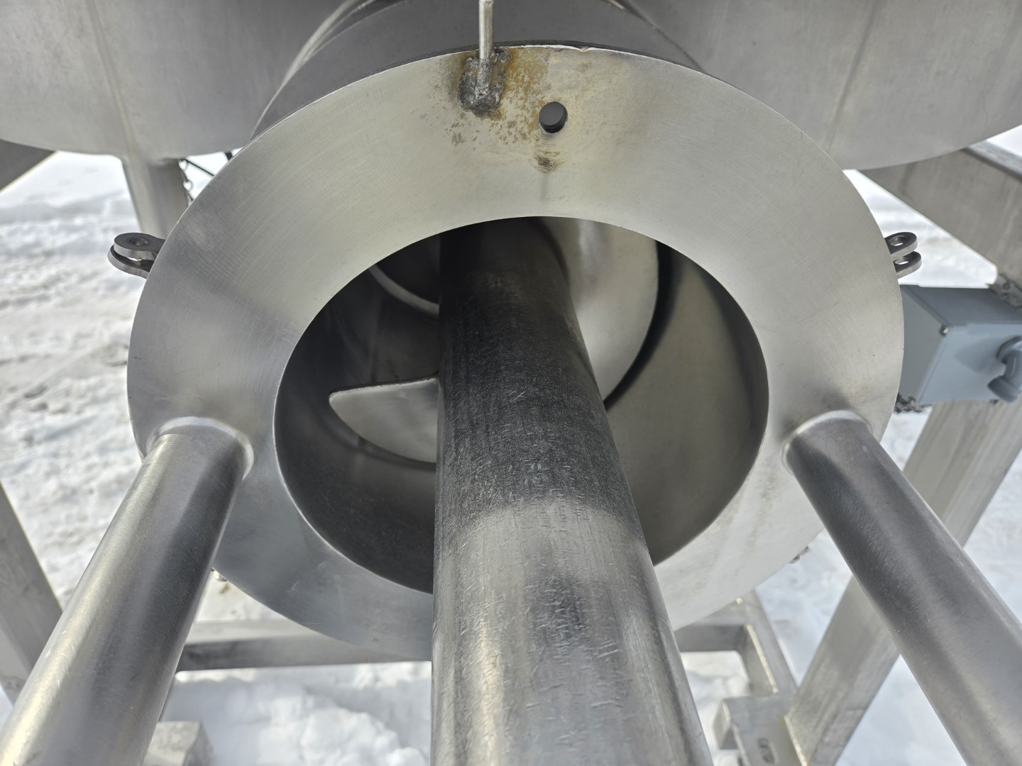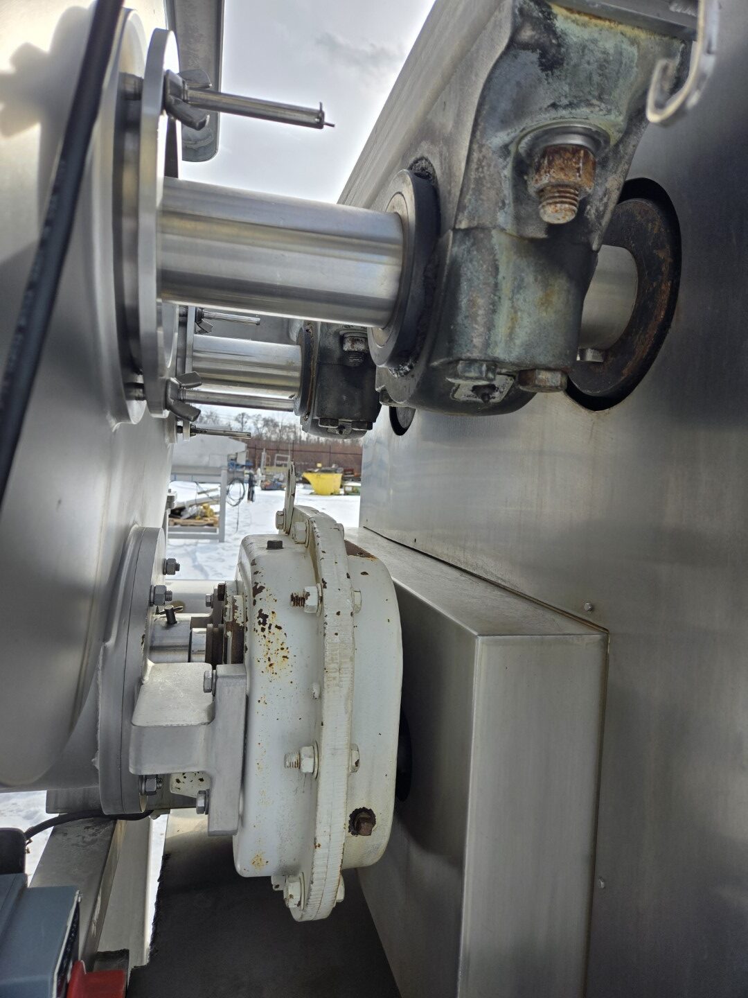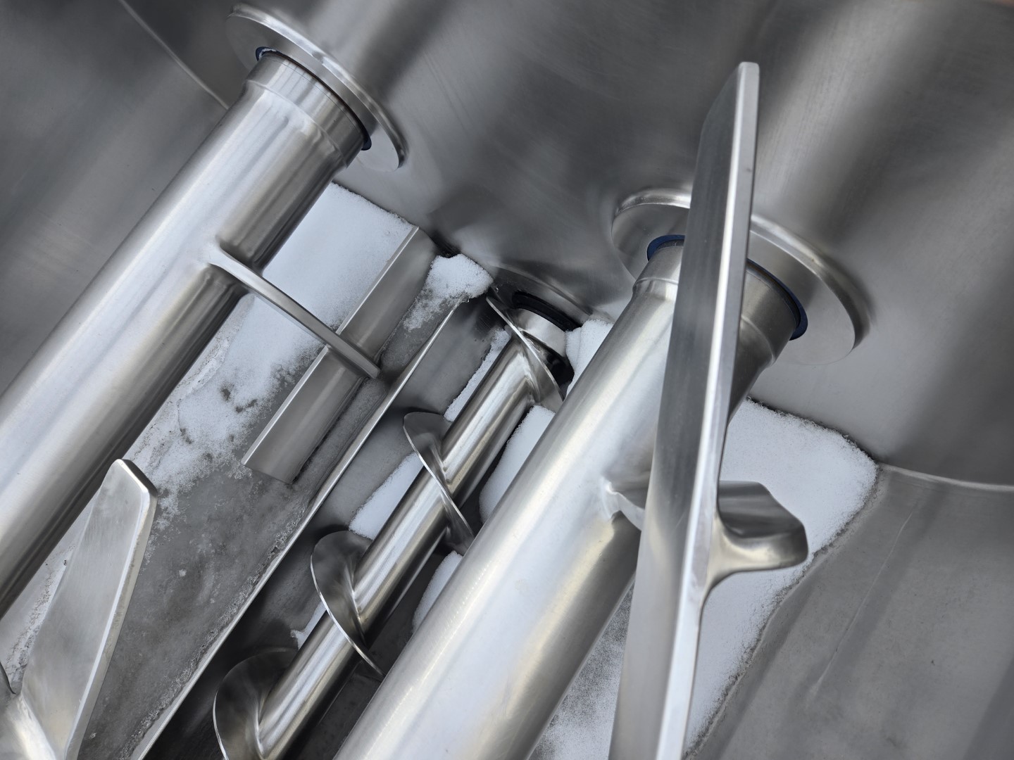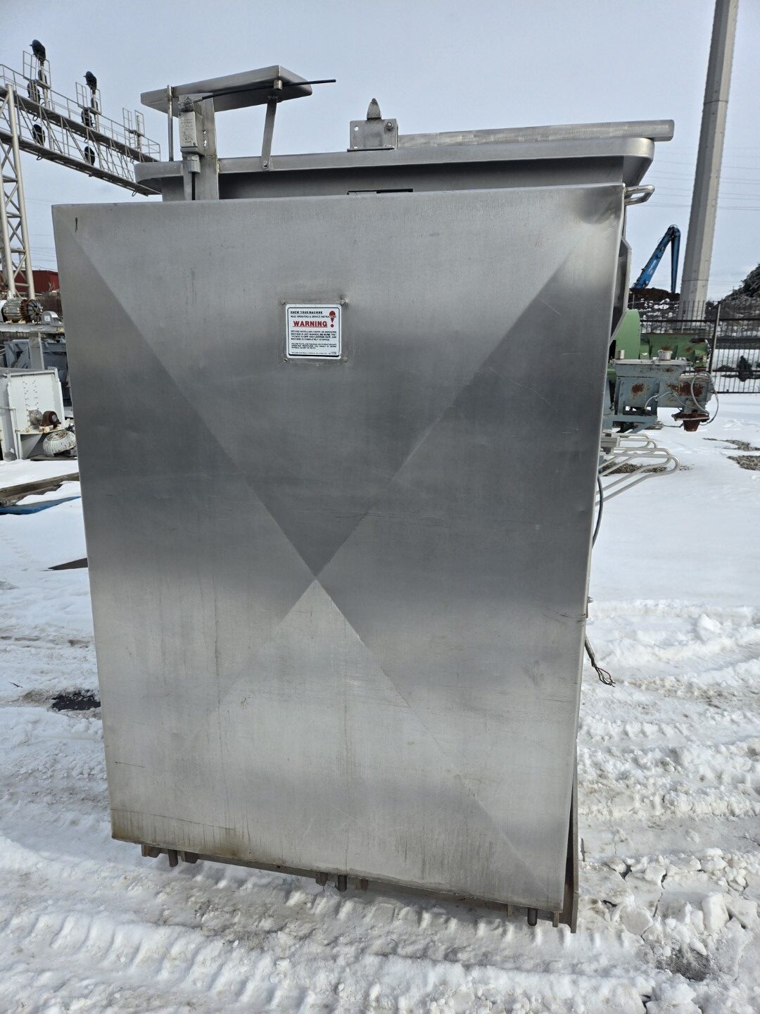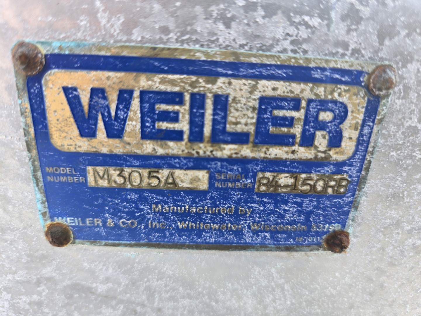 35 Cu Ft Weiler Model M305A S/S Dual Paddle Mixer. Approximately 50“ wide x 72” long trough with twin overlapping paddles, paddles driven by 10 hp, 230/460 volt motor drive, central unload auger screw discharge with independent motor drive, with spare paddle shafts, gears, and motors.