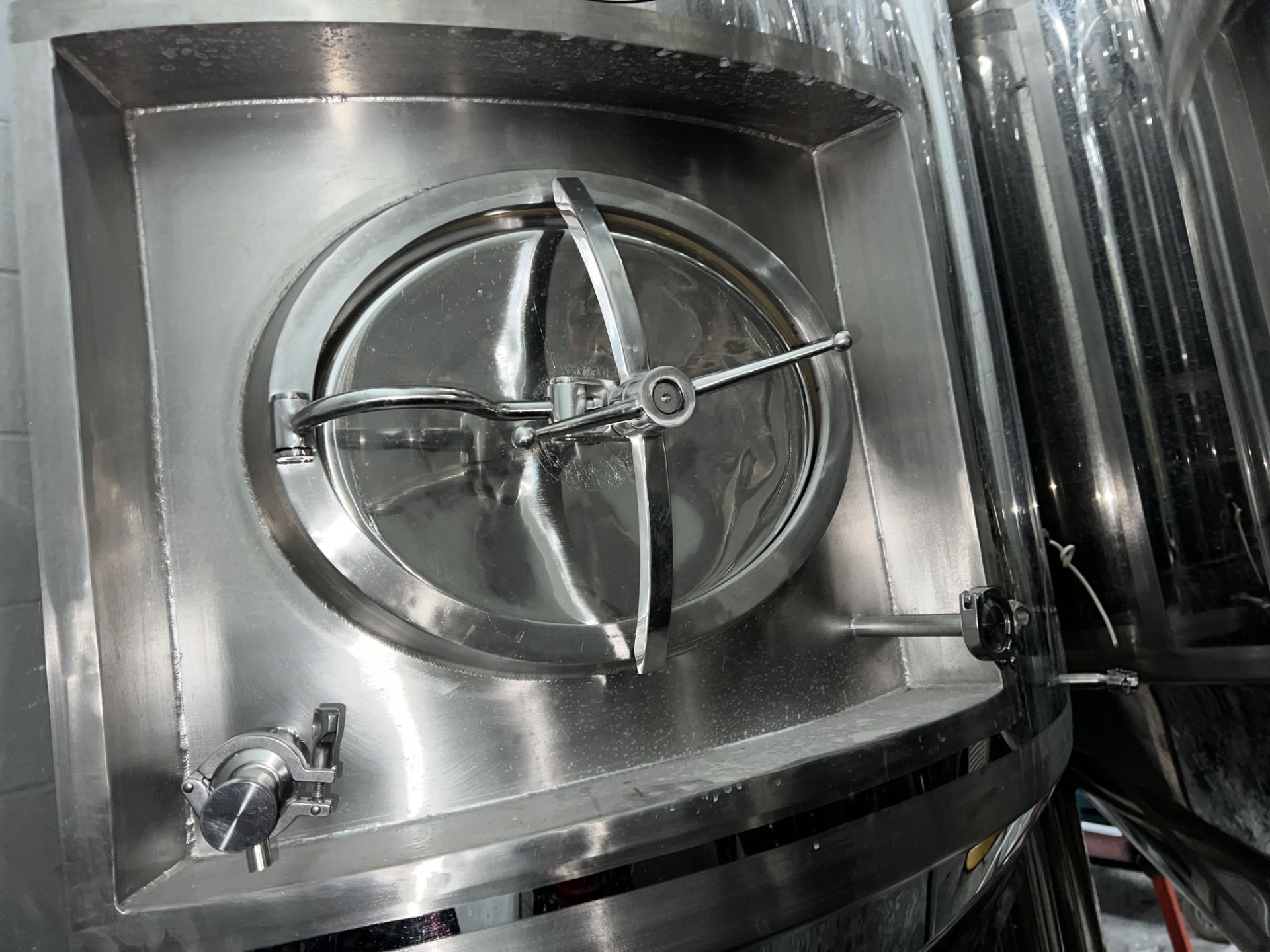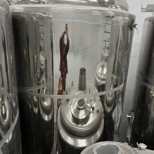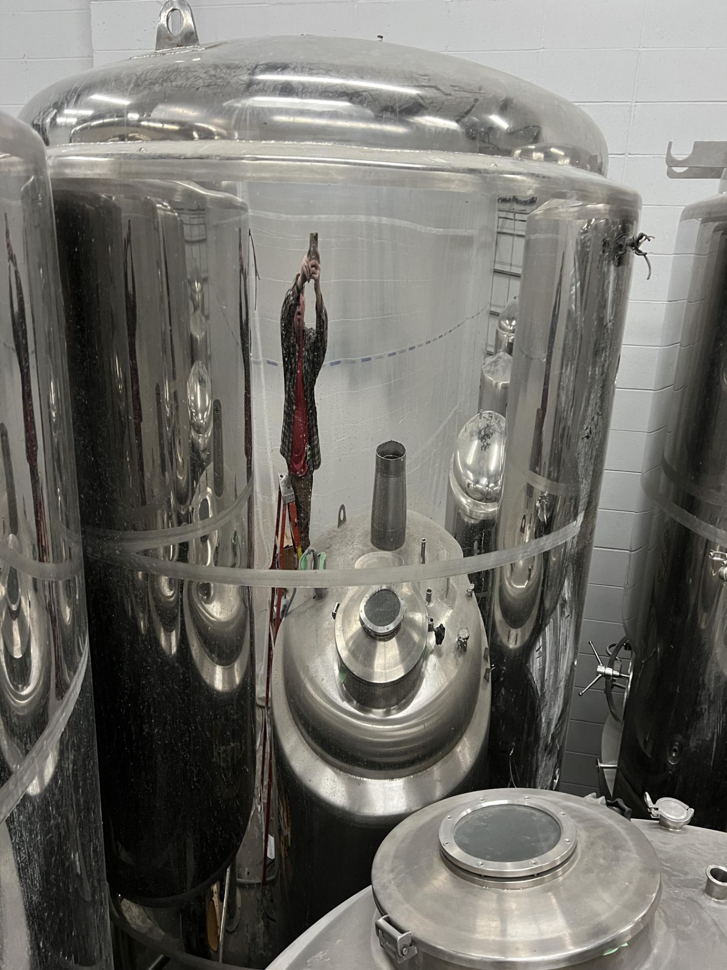 40 BBL DYE Fermenter (#2), Stainless Steel, Full Jacket, Cone Bottom, Front Manway, With Bucket of Fittings, 72 in. dia., 81 in. Sidewall, 11 ft. Tall Overall, Valves, Fittings, Spray Ball