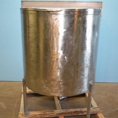400 Gallon (Approx) Feldmeier S/S Vertical Single Wall Tank. Flat Top, Cone Bottom. 50 in Interior Diameter x 46 in Straight Side. 54 in Deep. Solid S/S Top with (1) 1/3 S/S Hinged Cover. S/S Bridge For Mounting Agitator. 3 in Diameter Flanged CBO with Fluid Flow Outlet Extension and Manual Valve, 1 1/2 in Diameter Final Outlet. Discharge Height 14 in at Bottom of Tank, 7 in at Final Outlet. (3) 9 in H S/S Legs.