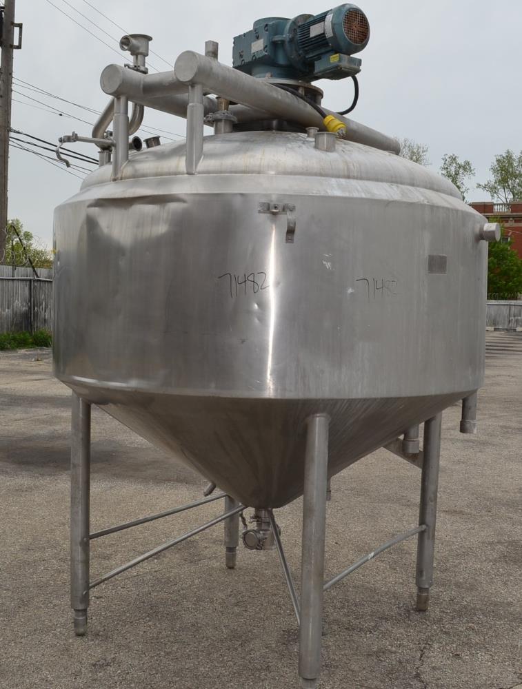 500 Gallon Crepaco S/S Jacketed Sweep Scrape Agitated Cone Bottom Tank