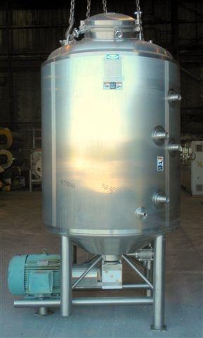500 Gal Walker Model PVLiquiverter Stainless Steel Jacketed Liquifier, Jacketed tank 52in diameter x 60in straight side, dished top, coned bottom. #4 sanitary internal rated 45/-10 psi at 320 deg.f., and -20 deg.f. at 45 psi. 42in section of side wall channel jacket rated 75 psi at 350 deg.f., and -20 deg.f. at 75 psi National Board # 5166. Insulated with 2in fiberglass, and 304 stainless steel sheathing. Bottom entering 11-1/2in diameter impeller, driven by a 40hp, 3/60/230/460 volt, 1775 rpm motor thru a Heavy Duty Diequa gearbox, #62, 7SP 039 reducer, no ratio. (2) top mounted adjustable, and removable baffles. Openings top (2) 2in tri-clamp, 3in tri-clamp, (2) 6in tri-clamp, 12in flange, 20in manway with cover. 3in tri-clamp tangential bottom outlet, approximately 23in discharge height. (4) 2in threaded jacket inlets. Mounted on 4 stainless steel legs