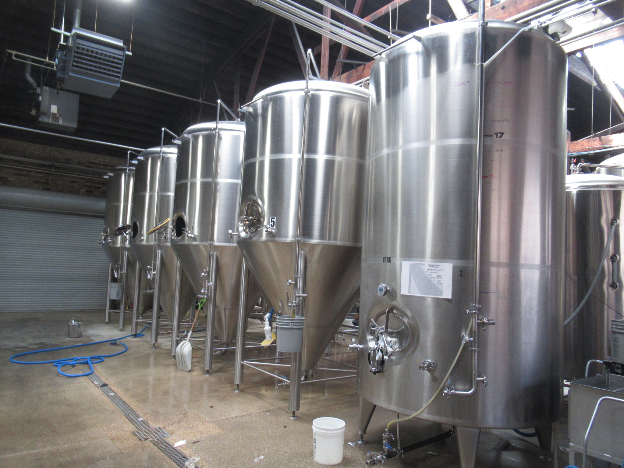 70 HL (60 BBL) CAI Model FTRHL70 Stainless Steel Vertical, Jacketed, Closed Top, Cone Bottom Fermenter Tank with Side Manway, Tap Ports, Thermometer and Four Braced Stainless Steel Legs