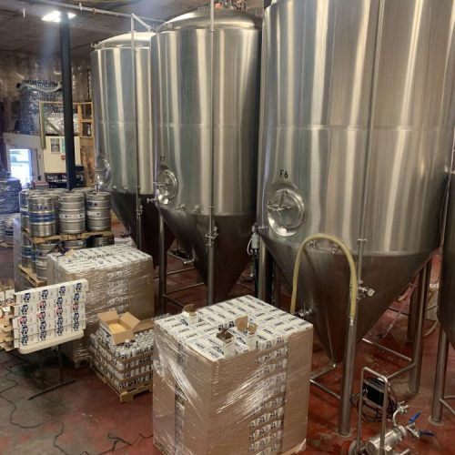 80 BBL DSE Vertical S/S Jacketed Fermenter Tank. 304 S/S, Fully Welded Exterior, 2-Zone Insulated and Clad, Hop Port, CO2 Port, Domed Top, 15 PSI Maximum Operating Pressure, Side Manway, 60 Degree Cone, Thermometer, Thermowell, Pressure Relief Valve, Racking Arm, Sampling Valve, CIP Arm and Sprayball, Pressure Gauge, Three Butterfly Valves, Adjustable Feet.