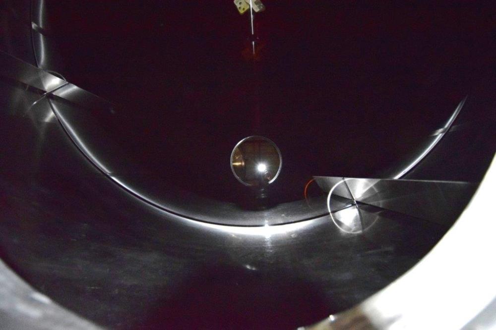 8,000 Gallon (approx.) Northland Vertical 316L S/S Jacketed Agitated Tank. Approximate 120 in diameter x 156 in straight side. Flat top, 304L stainless steel dimple jacketed dished bottom, rated FV/125 PSI at -20 to 360 degrees F. Carbon steel agitator bridge with a Lightnin model 94Q7.5 agitator, approximate 7.5 hp XP motor, serial # 8626858601. (4) Sidewall baffles. Top manway, approximate 3 in center bottom outlet. Mounted on 6 stainless steel legs.