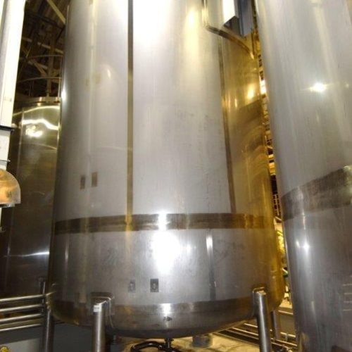 8,000 Gallon (approx.) Northland Vertical 316L S/S Single Wall Agitated Tank. Approximate 120 in diameter x 156 in straight side. Flat top, dished bottom. Carbon steel agitator bridge with a Lightnin Model 72Q3 agitator, approximate 3 hp XP motor, serial # 96E6127001. (4) Sidewall baffles. Top manway, approximate 3 in center bottom outlet. Mounted on 6 stainless steel legs.