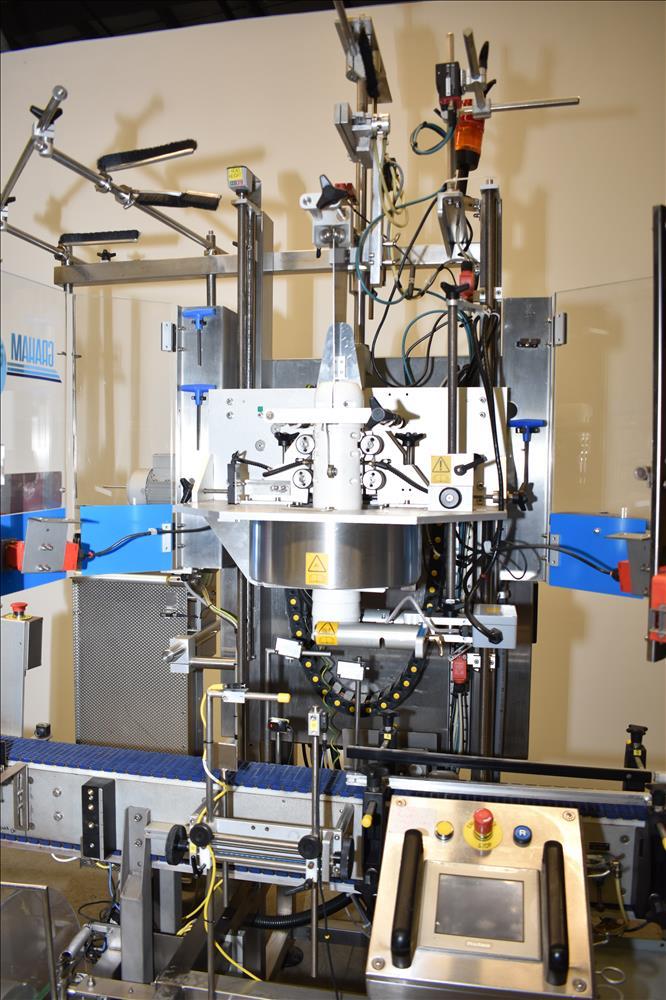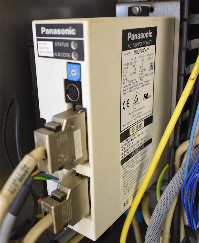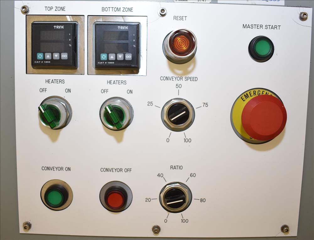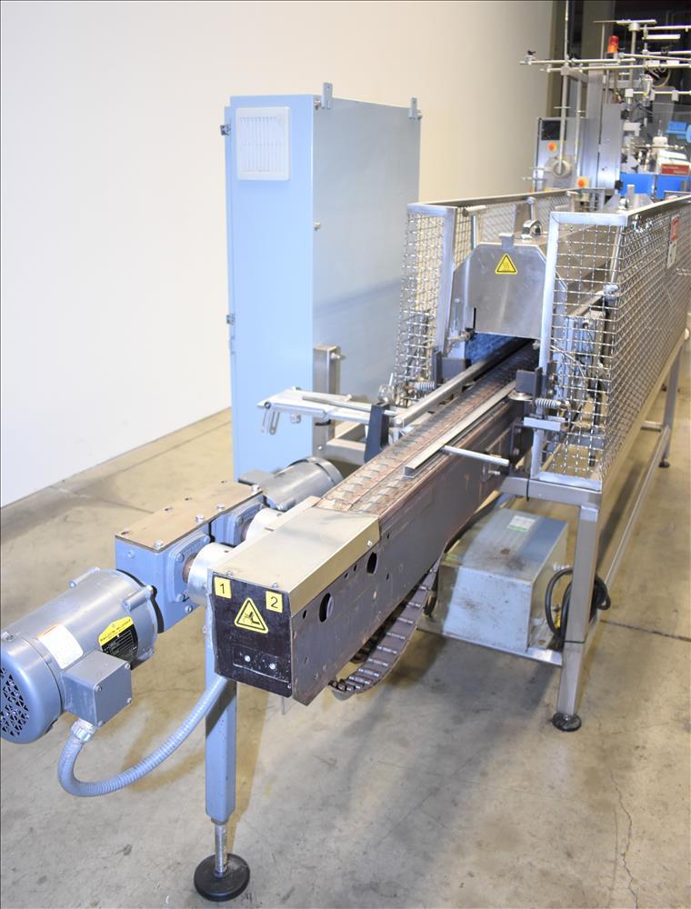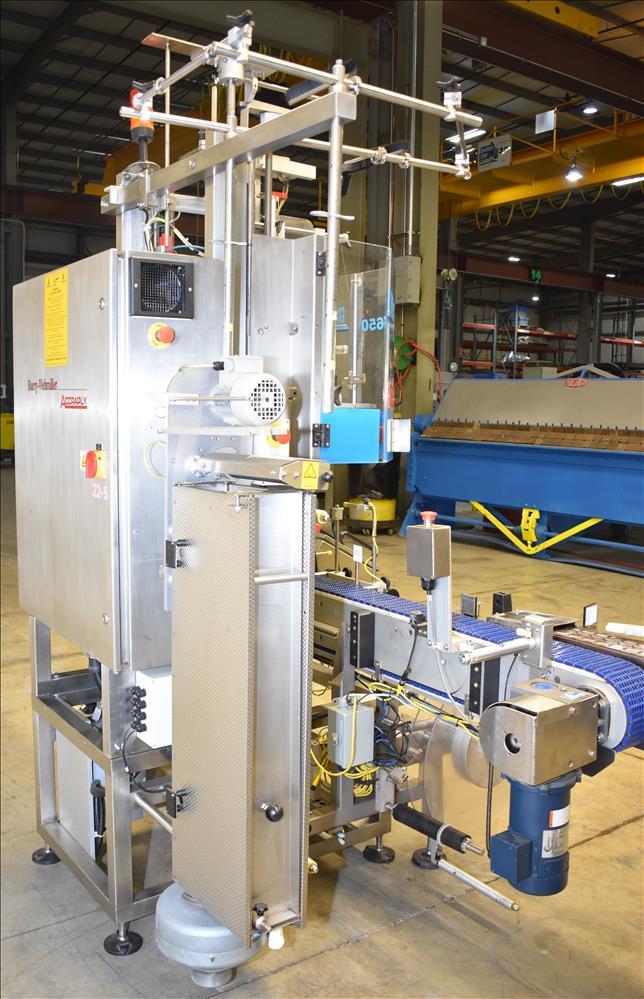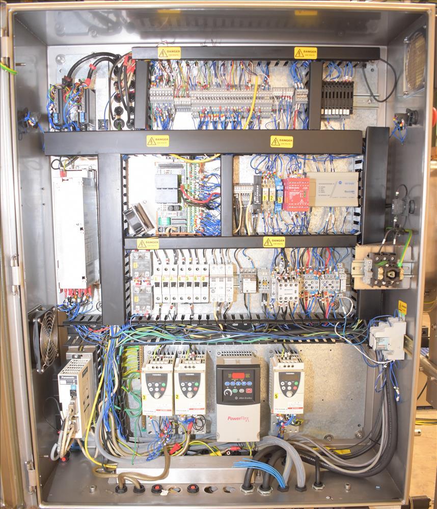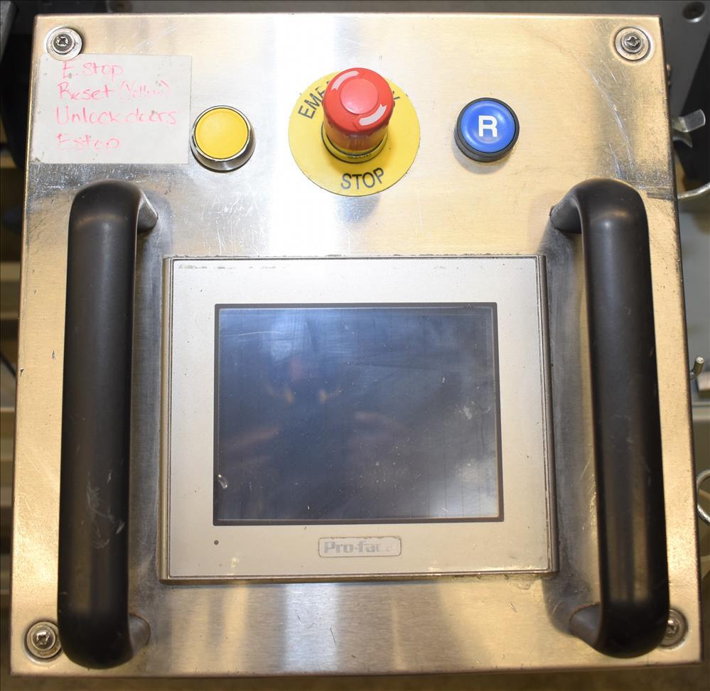Accraply (Graham “Sleevit”) Model 650VF High Speed Shrink Sleeve Label Applicator and Heat Shrink Tunnel. Capable of speeds up to 650 Containers per minute (depending on application). Container size range: 1.1 in – 6.6 in or 28mm – 170mm (diameter) x 1.1 in – 11.8 in or 30mm – 300mm (height). Material types: PVC, PET/PETG, OPS, PLA. Allen Bradley Micrologix1000 PLC with a Proface HMI. Toshiba Powerflex 4 and Panasonic Servo Drives. Has print registration. Includes a 480V Electric Shrink Tunnel, Model 105HT. Serial # MSN06032. Tunnel has 6 in wide x 6 in high opening. Conveyor is 127 in long x 4-1/2 in wide table-top chain. 3/60/230V Sleever, 3/60/480V, 60 Amp Tunnel. Serial # 5452.