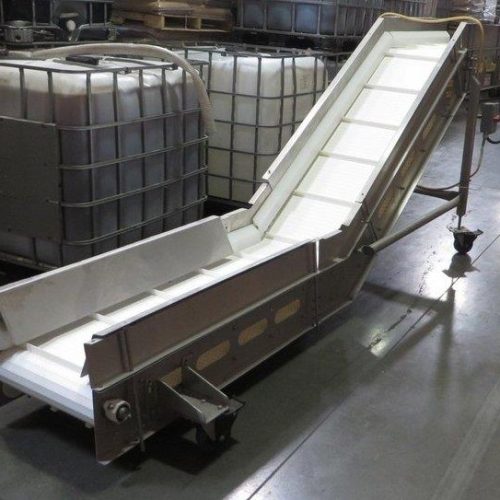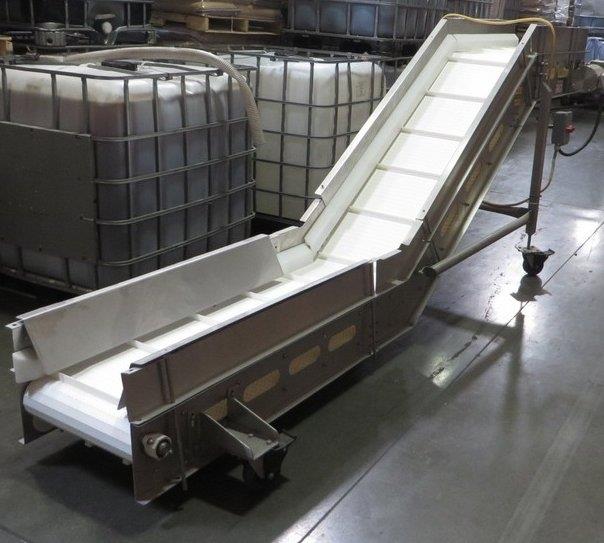 Advanced Food Systems Model DTC22 15 ft S/S, Dough Transfer, Incline End Conveyor with 19.5 in Poly Cleated Belting with S/S Frame, Casters, S/S Wash Down Motors, Etc.