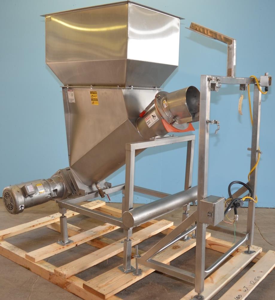 Advanced Food Systems Model SA06 and WBC20 Incline and Suspended Weigh Belt Conveyor System Including: Model SA06 S/S Incline Screw Conveyor, 9 in Diameter x 48 in Long S/S Screw. Top Mounted 40.5 in L x 28 in W x 26 in D S/S Feed Hopper, 48 in Discharge Height, S/S Square Tube Frame, 3 HP Drive. Model WBC20 18 in W x 18.5 ft L Suspended Weigh Belt Conveyor with 18 in Wide Drag Type Rubberized Belt, (4) HBM Model S35-1K-20575 1,000 Pound Capacity Load Cells, S/S Frame with S/S Square Tube Stand, 1 HP S/S Wash Down Motor. 230/460 V, 3Ph, 60 Hz.