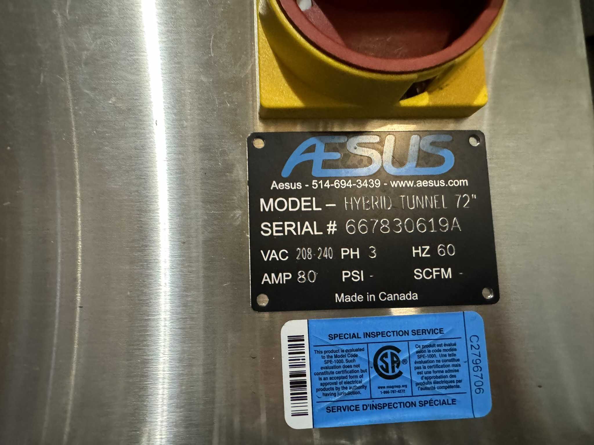 Aesus Hybrid Tunnel 72 Inch 72 Inch Hybrid Heat Shrink Tunnel with Steam and IR Heat with Box of Stainless Steel Legs S/N:667830619A
