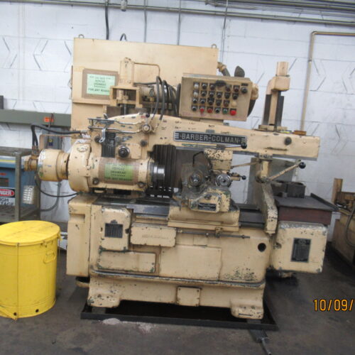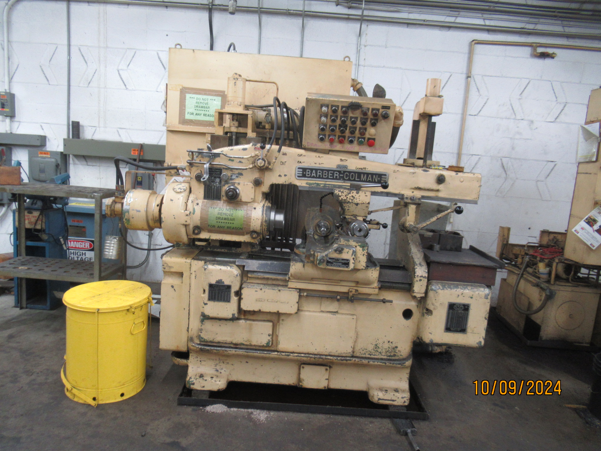 Barber Colman Model 16-16 Hob Sharpener, 16 in Diameter, 16 in Hob Length, Double Thread Index, Type C Support, Antifriction Bearings, Hob Shaft, Square Cut and Plunge Cut Cycles, Power Clamping Cylinder, Coolant, 100-568 RPM