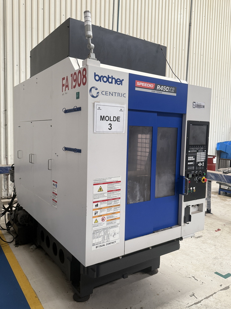 Brother R450X1 CNC Vertical Machine Center; To Include but not limited to: Pallet changer: Brother QT 2-face pallet system; Table (each face): 600 x 300 mm; Max table load: 120 kg; Travels (X/Y/Z): 450 / 320 / 305 mm; Spindle taper: BT30 (7/24 No.30); Max spindle speed: 10,000 rpm; Spindle motor rated capacity: 6.7; Automatic tool changer: 14 or 22 tools; Rapid traverse (X/Y/Z/W): 50 m/min; Max cutting feed: 30,000 mm/min; Coolant: Flood, TSC optional; Electrical: Approx. 220V, 3-phase; Description: High-speed pallet-changing CNC drill and tap machining center with compact footprint for high-production environments. 1 Ea. misteraia show general industrial dust and particles collection; fan/blower integrated. 2 Ea. Sub spindles/4th Ais on this machine yukimana siko, type: YC CP 170 L, Serial:2205016 and 2205012. 1 Ea. Hydraulic system verteck electric Hydraulic pump model: C48475-01 Serial: 15L21001 S/N: JPN125484, 2022, Ref: FA1908