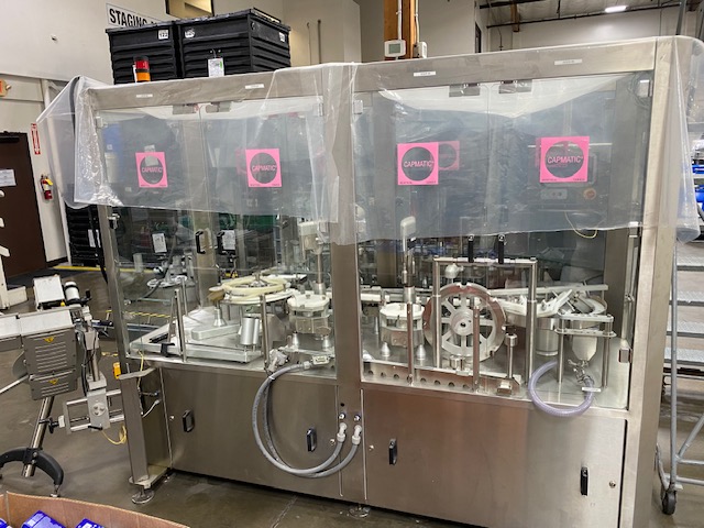 Capmatic Model BambinaFPCL Stainless Steel 40 BPM Monoblock Filler, Dropper/Plugger, and Labeler