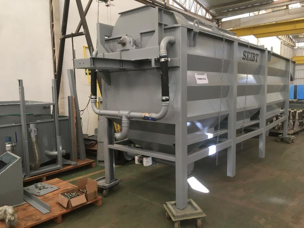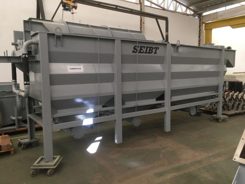 Complete Seibt Recycling Line Including Seibt Model Mghs 150/100 A2 Granulating Mill. Two-Part Grinding Box Made of Sae 1020 Sheet Steel. Bearing Housing in Sae 1020 Steel. Industrial Screen Housed in An Articulable Magazine. Industrial Screen with Thickness Of 9.52 Mm. Double-Walled Feeding Nozzle Filled with Anti-Noise Material. Rotor With Side Discs And 06 Knives Positioned in Scissor Cut, With Six Interleaved Cut Points. Stainless Steel Over Funnel and Feed Funnel. Stainless Steel Inner Plates of The Feeding Nozzle. Stainless Steel Outlet Nozzle. Rotor Axle in Sae 1045 Steel. Device/Template For Adjusting Its Knives Outside The Mill. Industrial Screen with Optional Holes In 12, 14, 16, 20, 25mm Or Special. 4 Fixed And 6 Rotating Knives Made in Special Vnd Steel. 150 Hp. Screw Conveyor Ø400×3000 With Stainless Steel Body, Partially Perforated Body For Water Drainage, Support Feet Made Of Carbon Steel Plate With Anti-Oxide Paint, Stainless Steel Helicoid With 600mm Diameter, 6.35mm Thickness, Stainless Steel Collection Gutters, Drainage, And Top Covers, Screw Length 3000mm, Screw Driven By Reducer And 4hp Three-Phase Electric Motor. Line Conveyors. Settling Tank. Stainless Steel Decantage Tank 1500 X 2200 X 8000 With Screws and Beaters. Stainless Steel Tank Structure. 7 Beaters with Stainless Steel Blades; Beaters Driven by Gearmotors Of 1.5 Hp Each, Stainless Steel Material Removal Screw With A Diameter Of 650 Mm, Driven By A 7.5 Hp Gearmotor. (2) Stainless Steel Screws With 250mm Diameter For Tank Cleaning, Driven By Gearmotors Of 1 Hp Each, Stainless Steel Discharge Screw Body, Tank Body 1500mm Wide, 2200mm High And 8000mm Long. Vertical Pre-Dryers (1, 2, 3, And 4) Ø470×2500 40hp, Perforated Cylindrical Body Built In Stainless Steel Plate, Cylinder With Ø470 Mm And 2500 Mm In Length, Stainless Steel Rotor, Stainless Steel Shaft, Stainless Steel Rotor Blades, Stainless Steel Pre-Dryer, Powered By A 40 Hp, 3 Phase Electric Motor. Centrifugal Dryer. Bulk Bag Station. Line Conveyors, Settling Tank. Spare Parts