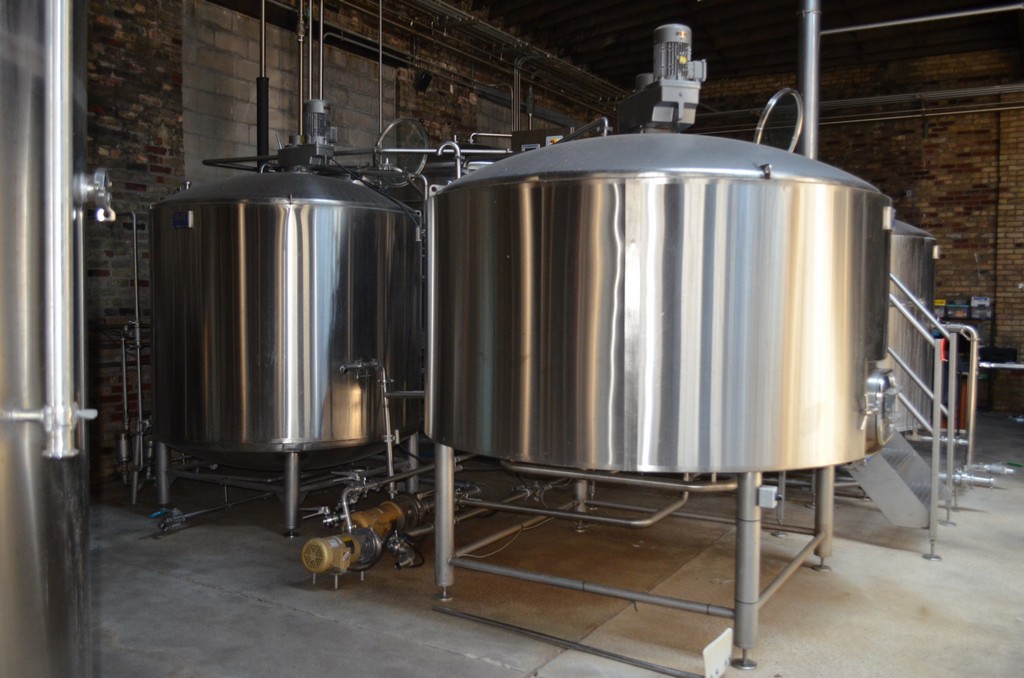 Complete Smart Machine Technologies Stainless Steel 30 BBL Brewhouse System Including Mash Mixer Kettle Serial 3344006; Lauter Tun Serial 3344001; Whirlpool Serial 3344002 ; Elevated Center Operator Platform; Brewhouse Control Panel with Allen Bradley Panelview Plus 600 Color Touch Screen Operator Controller; Sink; Plate and frame Heat Exchanger; Remote Electrical Enclosures; 1.5 hp Stainless Steel Centrifugal Pump; 3 hp Stainless Steel Centrifugal Pump; remote Heat Set Skid with Enerquip Tube and Shell Heat Exchanger; Miscellaneous Piping, Valves, Meters, Sensors, Connections, Etc