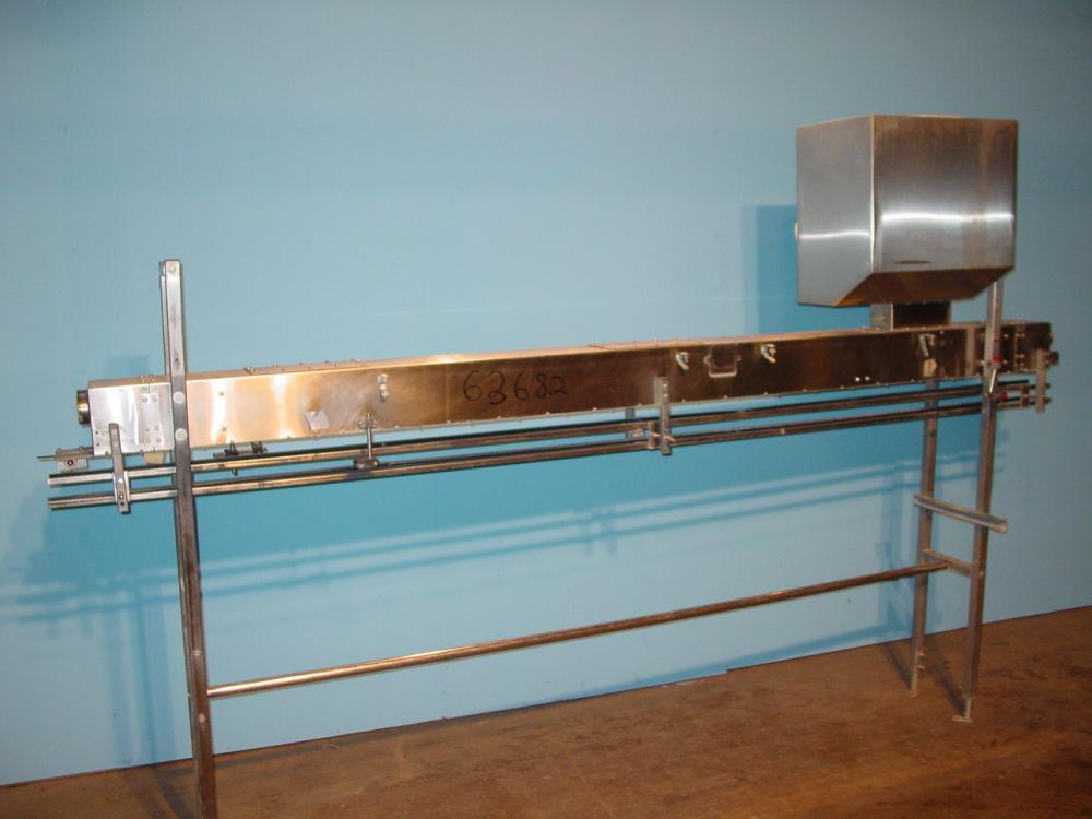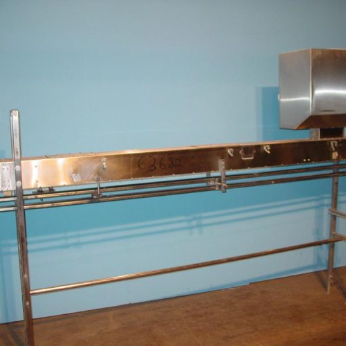 Descon Air conveyor for bottle neck s/s 11ft Long air conveyor, 2 1/2 in W x 1 1/2 in H tunnel opening with adjustable neck guide, side guide rails mounted underneath, Top mounted 3 hp 3/230/460/60, 7.4 amp blower, S/S frame, Bottom of tunnel 51 in from floor