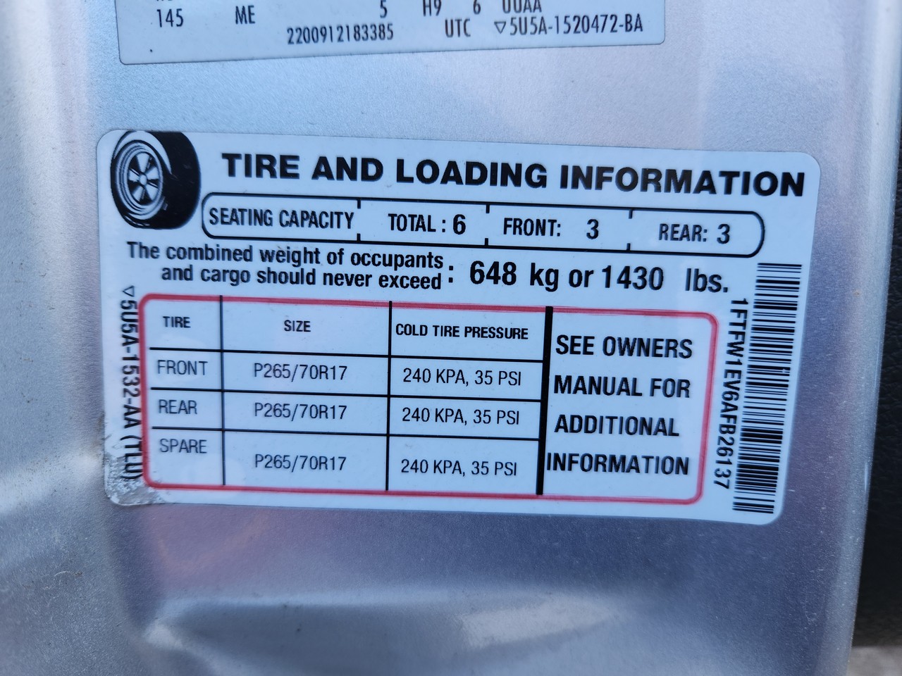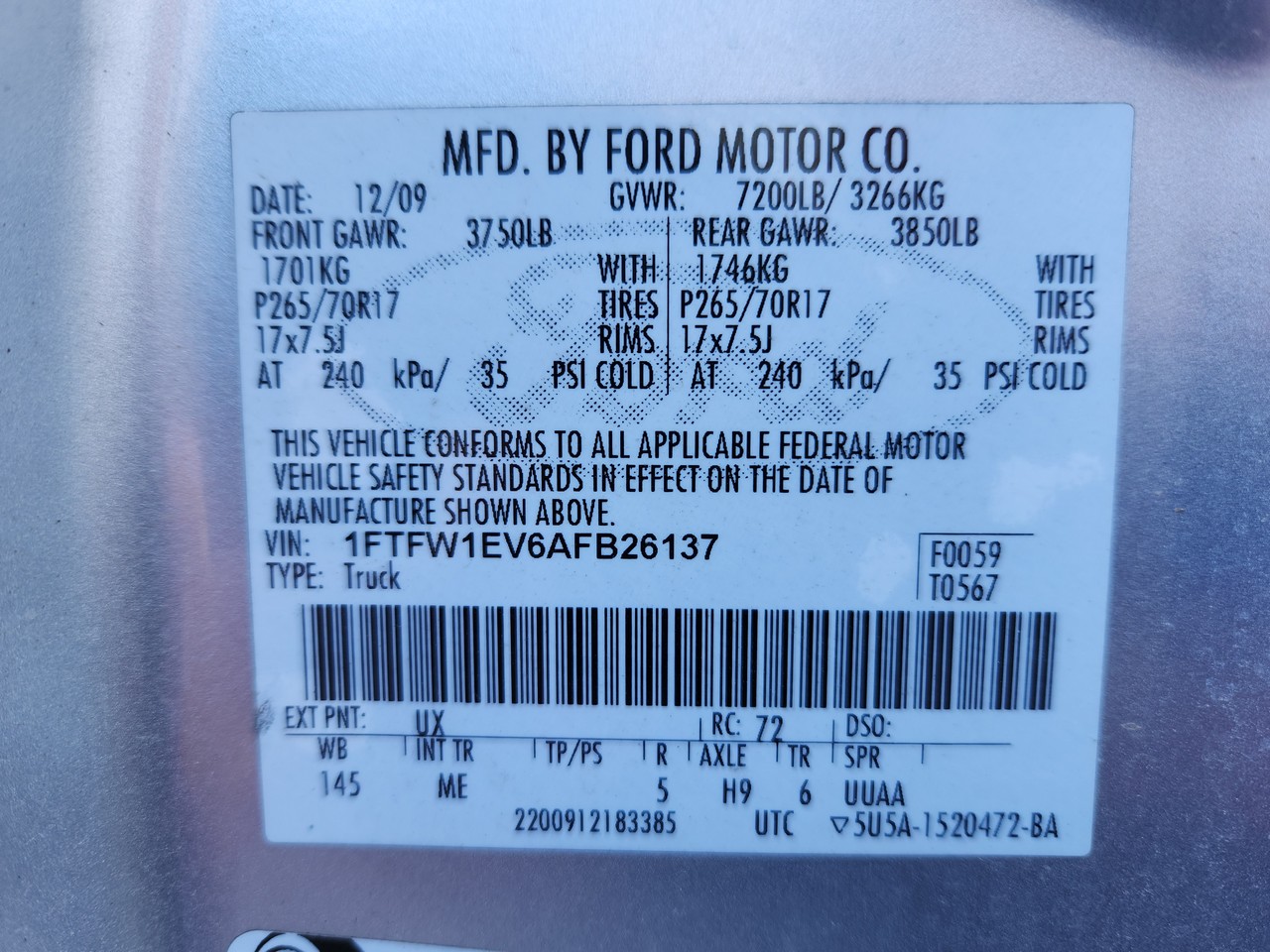Ford F-150 Pickup Truck 4×4, Factory Bed Liner, SuperCrew Cab, Automatic Transmission, 5.4 Liter 3V V8 Engine, PIN Code Entry, Matching Yokohoma Geolander LT265/70R17 Tires, TPMS Light Active, Runs and Drives, Currently In Use; 218000 Miles; VIN 1FTFW1EV6AFB26137; (2009)