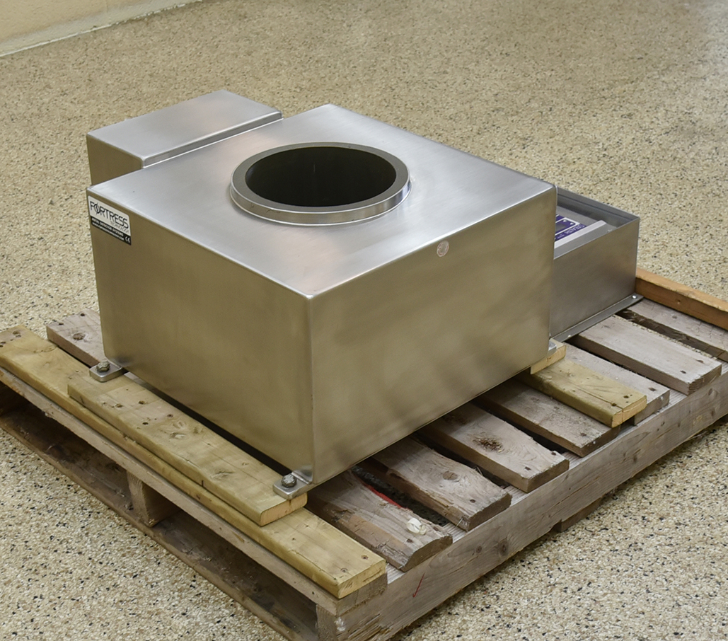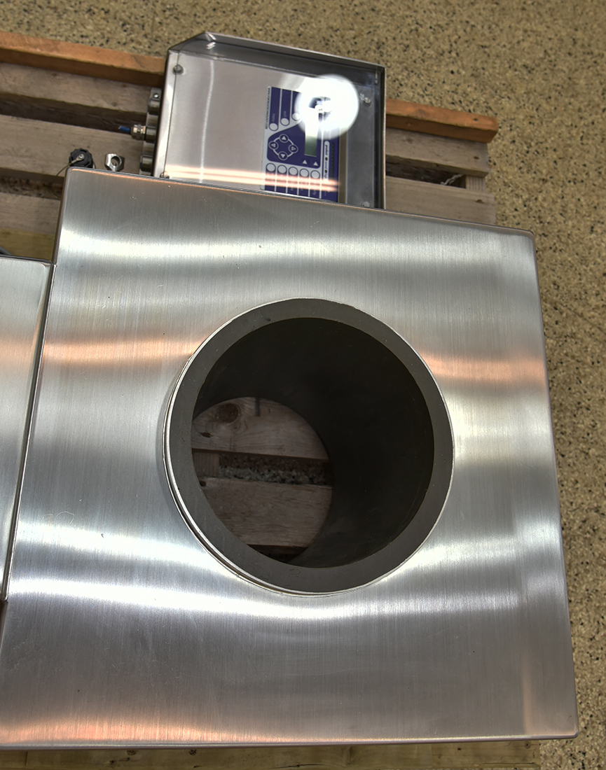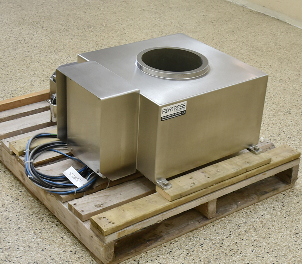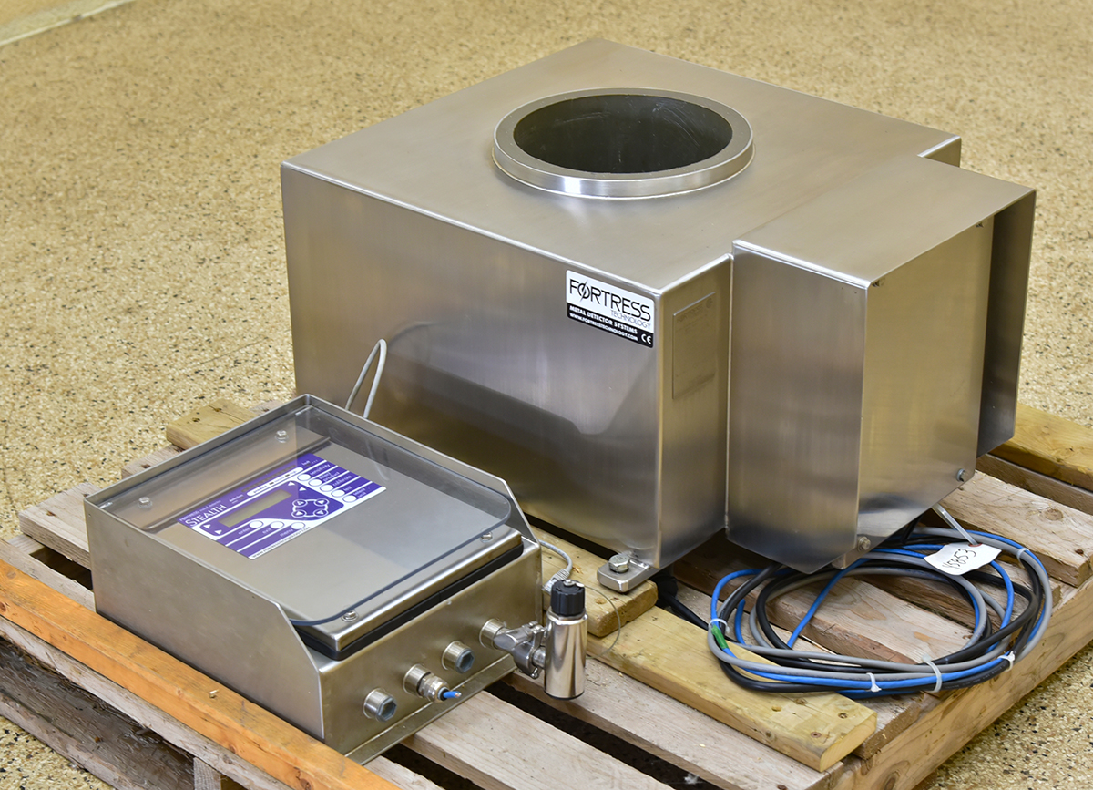 Fortress Stealth 9 Inch Diameter Stainless Steel Flow Through Metal Detector. 9 inch inside diameter x 13.25 inch long aperture. Remote digital control box (uses standard category 6 ethernet cable connection). All food grade hose-wash-down stainless steel construction. 110 V, 1 Ph, 60 Hz.