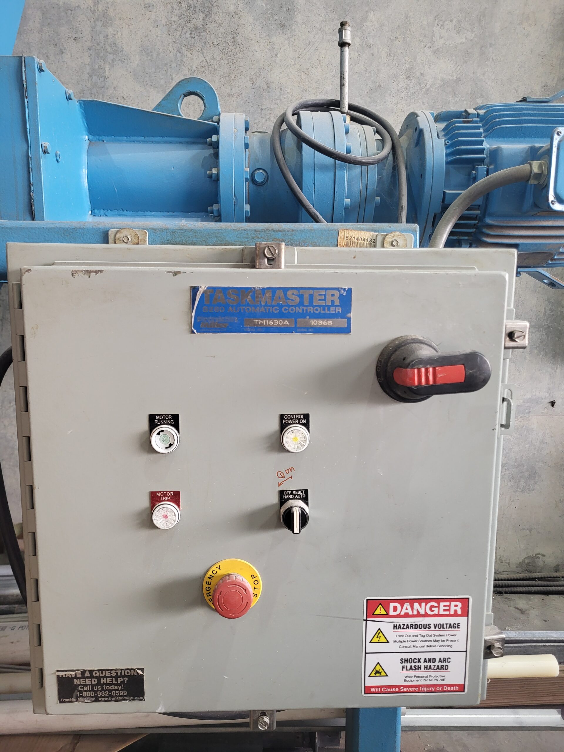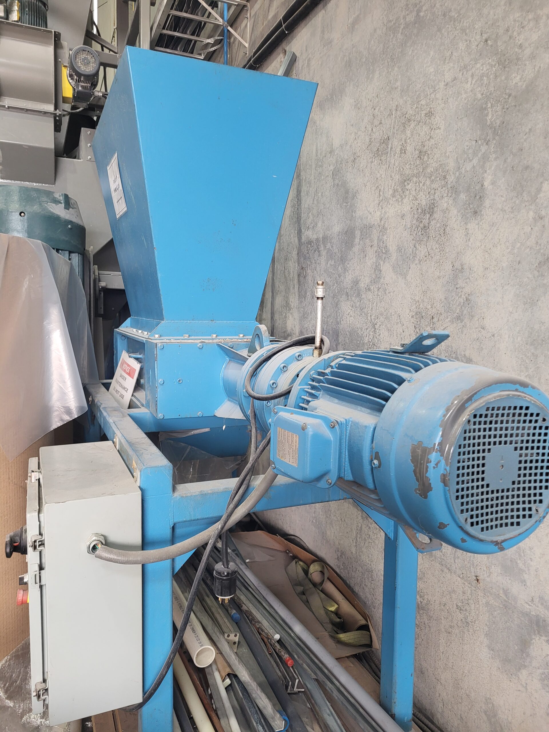 Franklin Miller Taskmaster Model TM1630A Shredder. Nom. 14-3/4″ w x 30″ Tall Cutting Chamber. Cutters: 5/16″ 11T “Combo” Cutters- 4140 H.T. Hardened and Ground for Uniformity. One-Piece Cutter and Spacer Provides Increased Strength. Cam Cutter Design Provides Effective Shredding While Minimizing Power Consumption. 2-3/4″ Hexagonal Shafting. Heavy-Duty D.I. and Steel Housing Construction. Mechanical Seals in S/S Cartridge Provide Superior Bearing Protection. Broad Flanges For Convenient Connection to Stands, Hoppers, Flanges. 15 HP, 460 V, 3 Ph, 60 Hz.