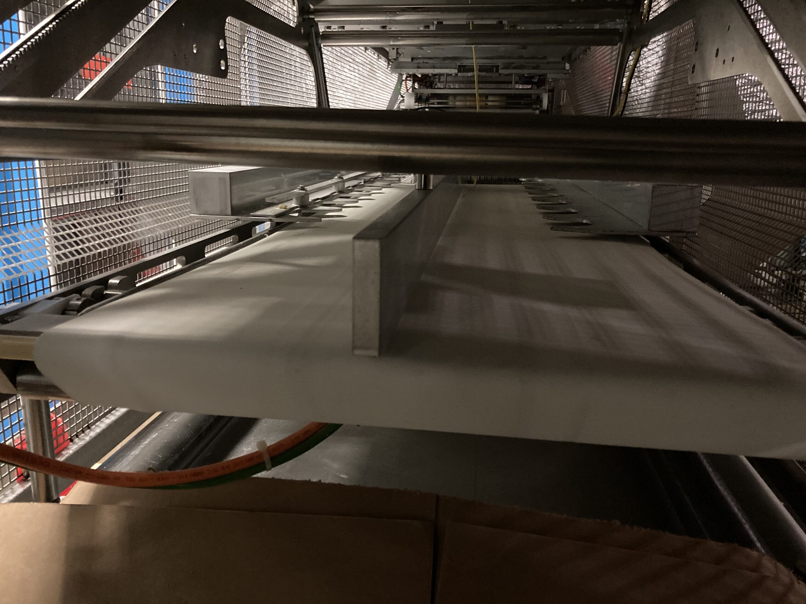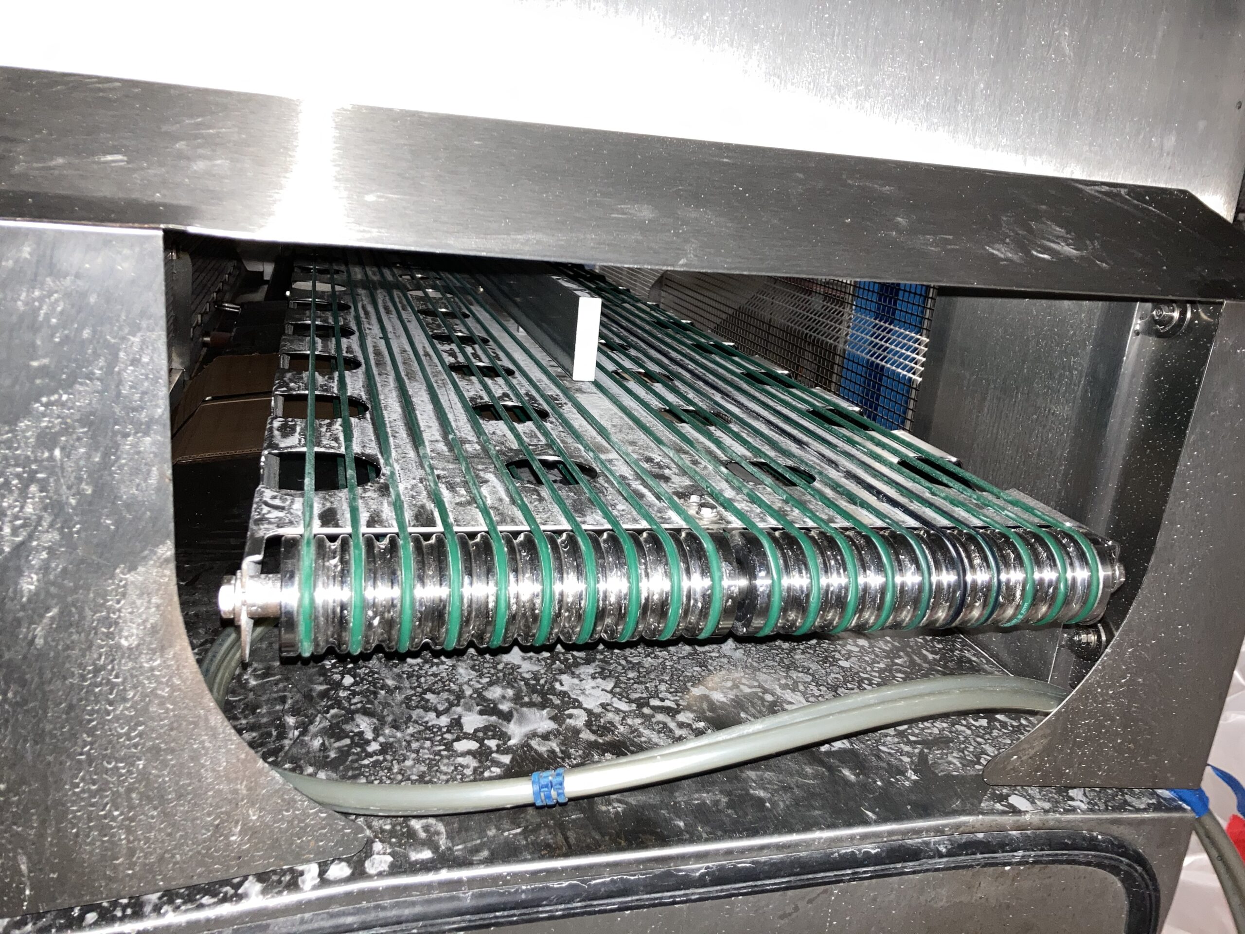 G Mondini Model Trave1400VG S/S Tray Sealer. Configured for Speeds of 200-220 TPM. Double Lane Conveyor for Transporting Two Rows of Cups at the Same Time. Two Moving Head Filling Heads. Vacuum and Gas Capabilities. Film Reels for Unwinding and Scrap Rewind. Infeed and Discharge Conveyors. Right to Left Configuration.