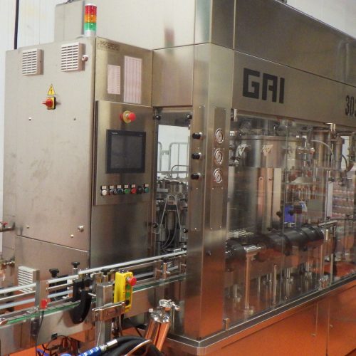 GAI Filling and Crowning Line Including: GAI Model 3031FMBIER Tri-mono Block 12-Head Inversion Mixer with a 24 Head Filler and a Single Head Crowner with Water Rinse Off Station, AAI Model 6050E1002 Wrap Around Labeler S/N L1711067 (2017), Klippenstein Model KE300HM Case Erector S/N 11314 with ITW Model Dynatec Hot Melt Glue System, Stainless Steel Surge Table with Pressureless Rollers, Manual Pack Off Station, Bi-Directional Pack Off Station, Stainless Steel Conveyor with Pack Off Table, Conveyor with (2) 90 Degree Turns, Stainless Steel Adjustable Legs, Power Roller Conveyor including 90 Degree Turn.
