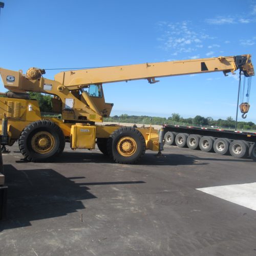 Grove Model RT518 18-Ton Rough Terrain Crane. Diesel Engine, Automatic Transmission, EROPS, Extendable Boom, Block & Hook, 25 ft Spreader Bar, Hydraulic Outriggers, 124 in Wheel Base, Steel Wheels, 16-25 Tires (Average).