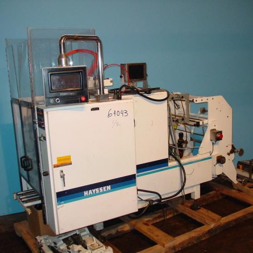Hayssen Model Ultima CMB/SF Vertical Form Fill and Seal Bagger with LOCK MET30+ metal detector. 13in W seal bar and vertical fin seal bar. Set up as a 12/16 machine with a 12in W x 16in L bag for a single pull. Can do a double pull up to 32in bag length. Minimum bag width is 4in, Maximum bag width 12in. Minimum bag length is 4in, Maximum bag length is 23in. Can run up to 110 bags per minute with a 4in W x 4in L bag. 1/2in dies for a 1/2in seal on each side. 13in L x 1in W rubber belt side pull downs, touch screen controls. 18in roll diameter with 3in core. 65 PSI, 3.2 cfm/10 bags/minute. 115V 1 Phase, 60 Hz, 30 Amp. Lock model MET30+ Waferthin vertical flow through metal detector. 8 1/2in diameter x 4 1/2in deep opening, 115 V, 1 Phase, 60 Hz, .4A, 2002, S/N 11816/1. Prodair Model GDP-N2-300-50-FM-SV nitrogen injection system. S/N GDP1204-3, Max inlet pressure 300 PSIG, Max outlet pressure 50 PSIG, 120 VAC, 2003.