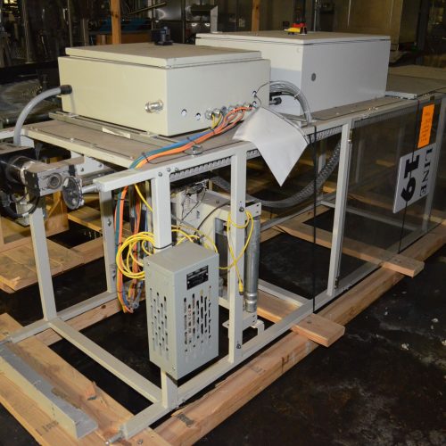 Honeywell Intelligrated Vertical Lifting Conveyor. 27 in L x 16 in W Infeed Roller Section. Lift Height Approx. 9 Feet. Steel Frame with Plexiglas Enclosure. 480 V.