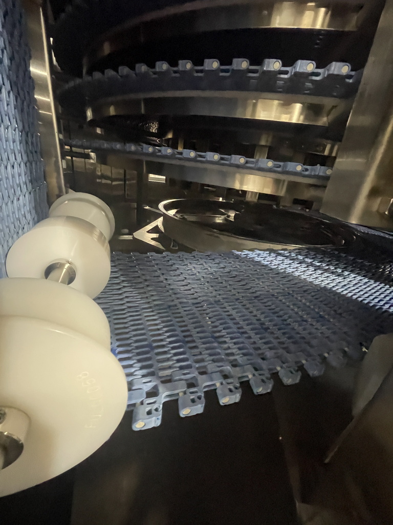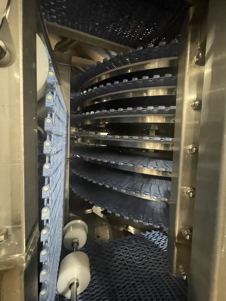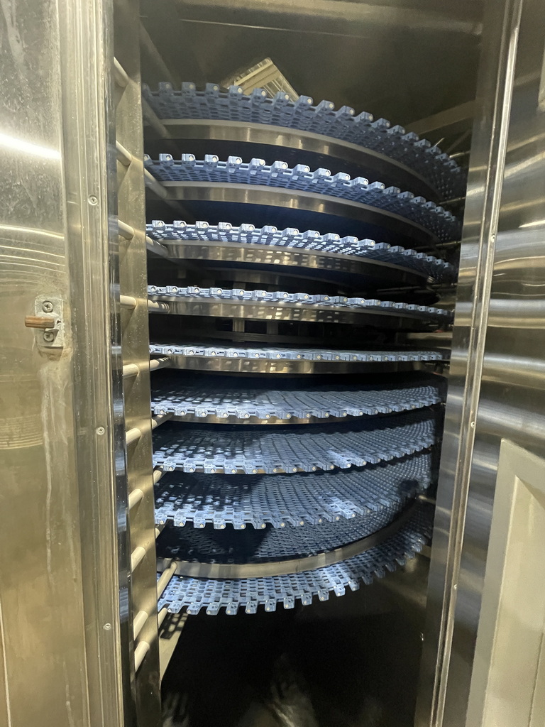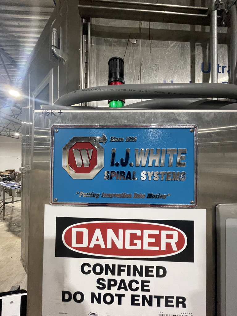 IJ White Thermal Edge Ultra Hydro Spiral Chilling Conveyor with Stainless Steel Cabinet