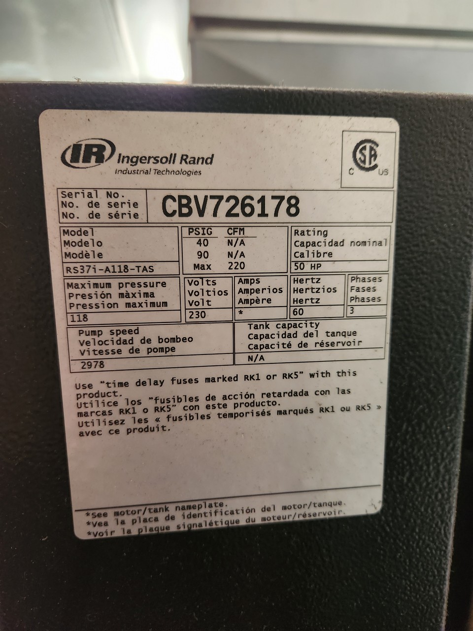 Ingersoll Rand RS 37i A118-TAS Air Compressor 50 HP