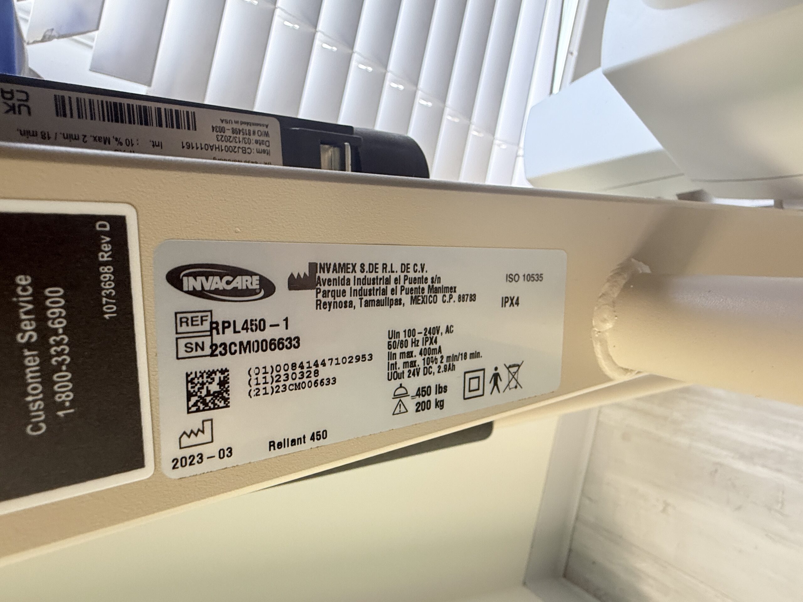 Invacare Reliant Model RPL4501 Electric Patient Lift with Manual Low Base, 450 Pound Weight Capacity