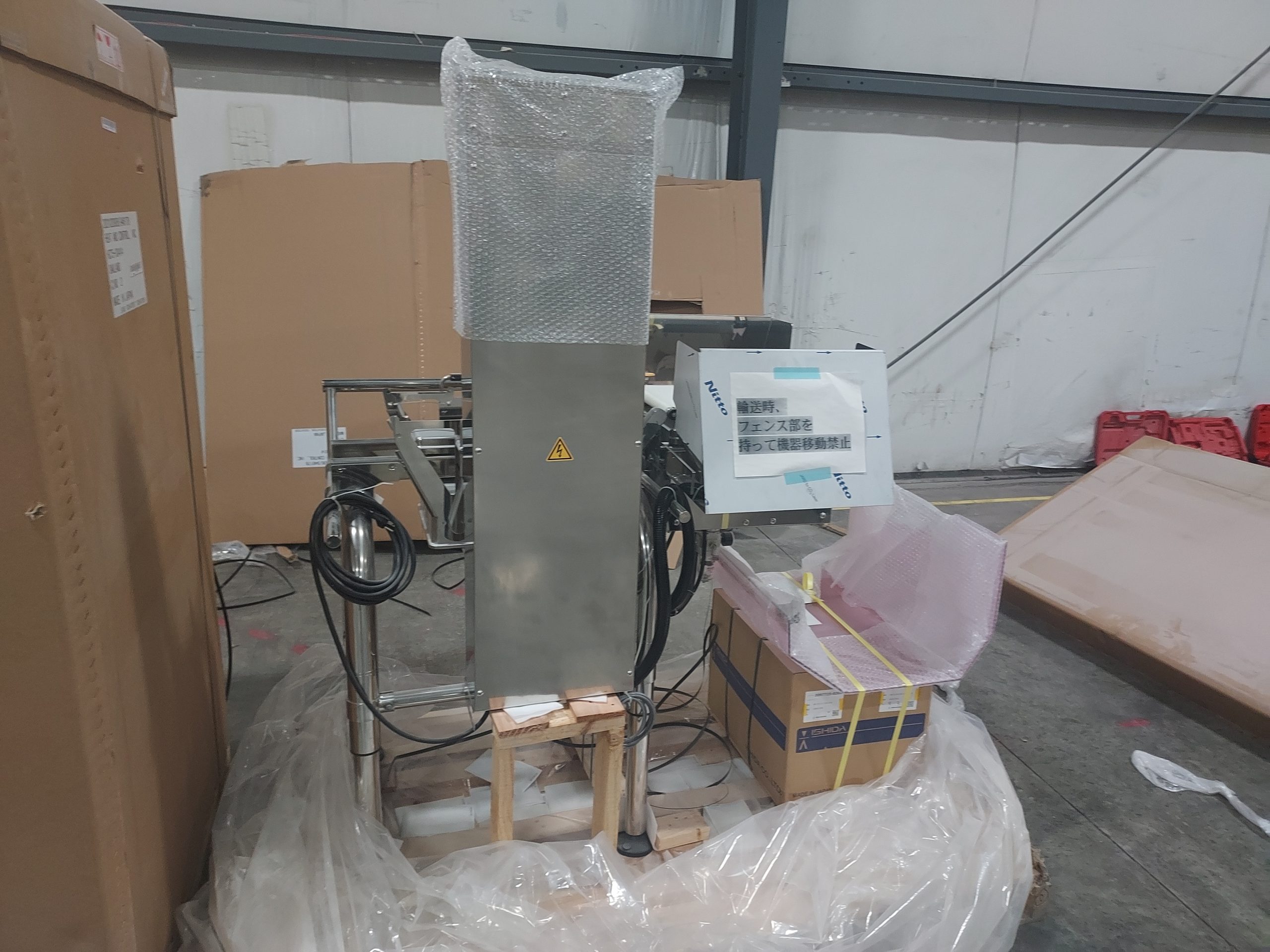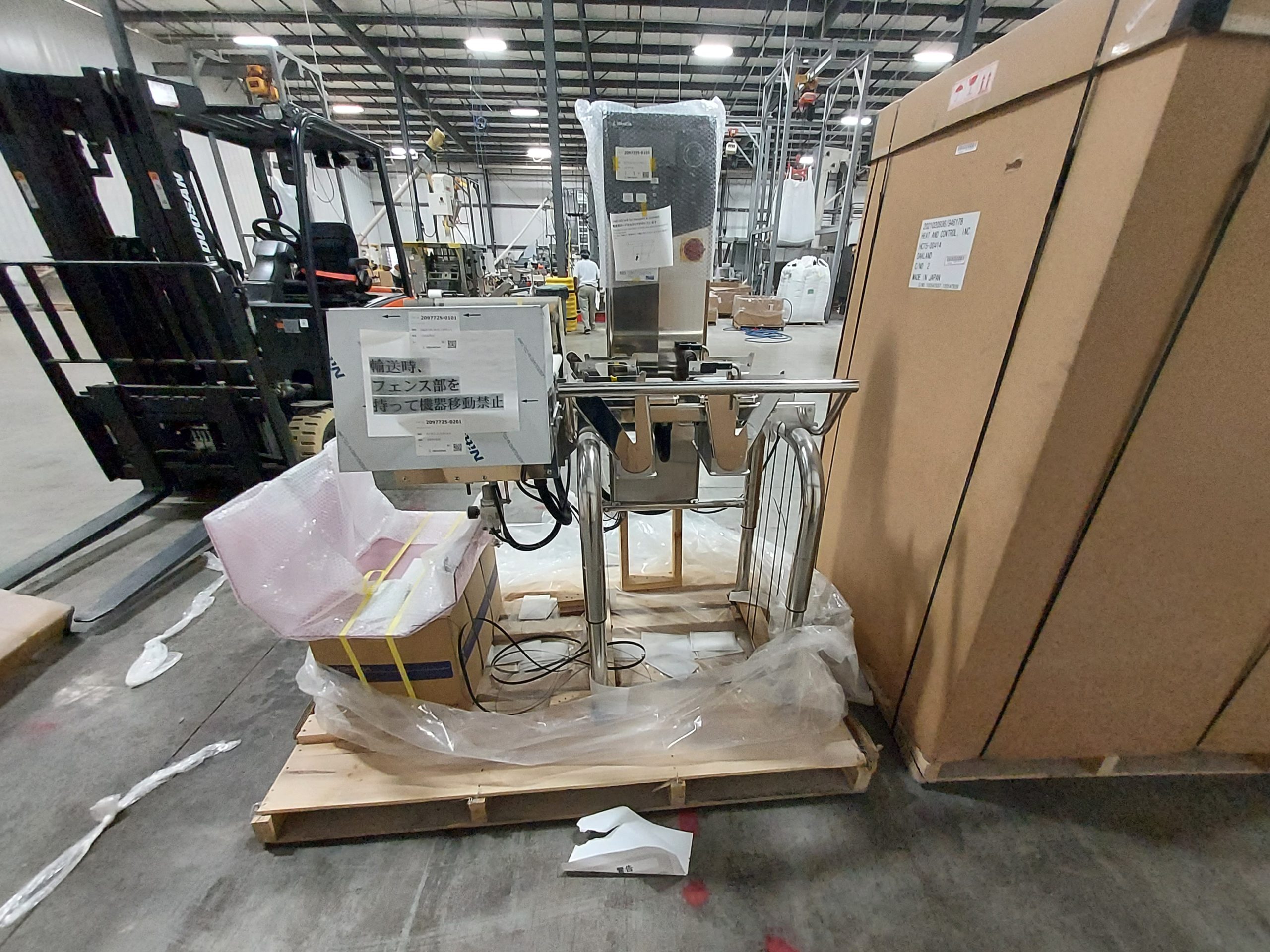Ishida Model DACSGNS01523SSIS S/S Checkweigher. Weighing ranges: 6-600 g / 0.05 minimum graduation and 15-1500 g / 0.1 g minimum graduation. 350 mm (13.6”) L x 240 mm (9.4”) W weigh conveyor. 350 mm (13.6 in) L x 240 mm (9.4 in) W infeed conveyor. Reject Conveyor Model RE015J32SSA. 450 mm (17.7 in) L x 240 mm (9.4 in) W belted conveyor. Two (2) air jet reject devices. Mid-ship design places the weigh sensor and motor at the real center of the weighing platform, improving stability and reducing response time. One touch locking mechanism securely fastens the conveyors during production while still allowing them to be removed quickly without tools. Telescoping legs and adjustable leveling feet increase height adjustability. 7 in full color LCD display. 300 preset product programs, each with selectable gram or ounce settings. Anti-dust rollers.