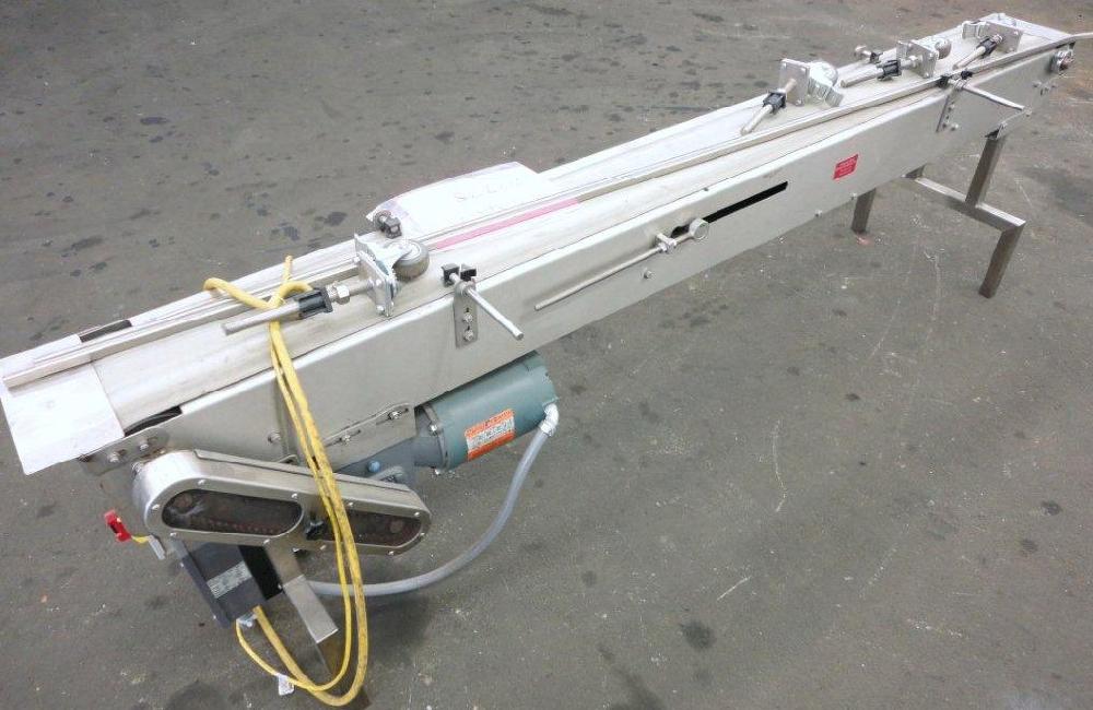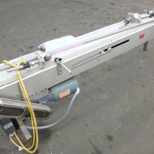 Johnson Nash 92 in L x 8 in W Flat Top Vinyl Belt Conveyor with Variable Speed Controller. Stainless Steel Frame, Mounted on Casters