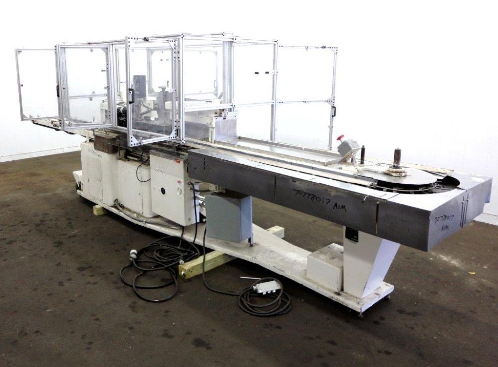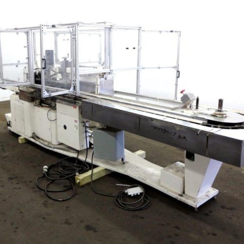 Jones Model CMV5 Semi Automatic Vertical Tuck Cartoner. Machine is Capable of Speeds Up to 120 Cartons Per Minute. Has Manual Load Station of 8 ft (both sides). Has 5 in Centers For a Carton Size Range: Length 1 in - 4-1/4 in, Width 3/4 in - 2-3/4 in, Depth 2-1/2 in - 8 in. Set Up for Tuck Style Cartons. JK Heller Corp Model S12 Variable Speed Motor Controller, Minarik Corp Motor Master 20000 Series Variable Speed Motor Controller, 94 in L x 4 in W Infeed Conveyor, C/S Frame with Casters. 480 V, 3 Ph, 60 Hz.