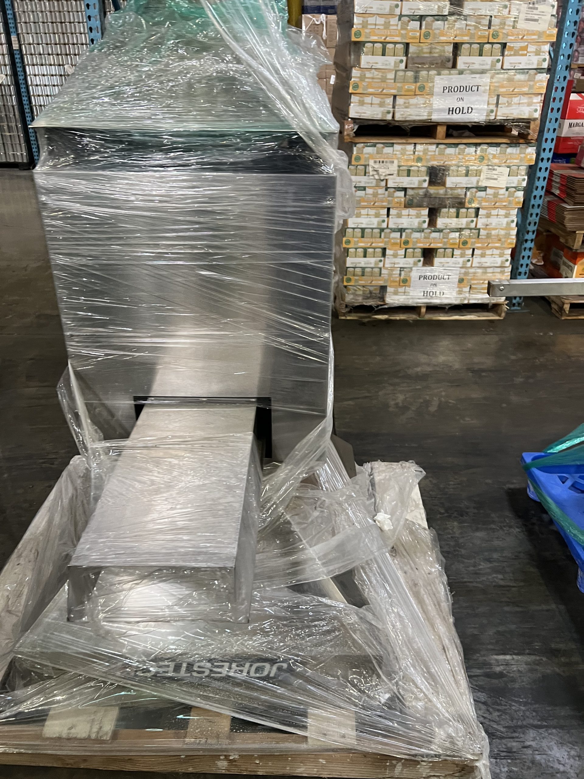 Jorestech Model EMini Doypack VFFS Machine with 10-Head Radial Weigh Scale. Working Speed of 6-8 Bags Per Minute. Flow Rate of 0.2 Cubic Meters per Minute at 7cfm. Carton Width 6-15.5 Inches. Mini Doypack with Zipper Opener, Hot Stamp Coder, Gas Flush. With Jorestech (10) Head Rotary Combination Scale with 1.3 L Buckets, 7 in Touch Screen, S/S Platform. Bucket Elevator with Infeed Hopper. Vibratory Feeder. Discharge Conveyor. 220 V, 1 Ph, 60 Hz.
