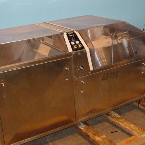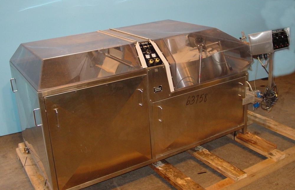 Kalish Mdl 7400 S/S bottle unscrambler, Feeds containers at up to 100 CPM, 42 in x 32 in x 22 in Bulk Hopper with 12 in W x 28 in L flighted rubber elevator belt 3 in H flights spaced 6 in on center, 40 in dia sorting disc with 2 1/2 in x 2 3/4 in pockets for 250 cc bottle ( other change parts available for 60 cc bottle with 1 1/2 in x 1 3/4 in pockets) , Air assist plexiglass covers, Outfeed: twist track 36 in L S/S outfeed, kalish Kalisort 100 controls, 1/110/60 6 amp,