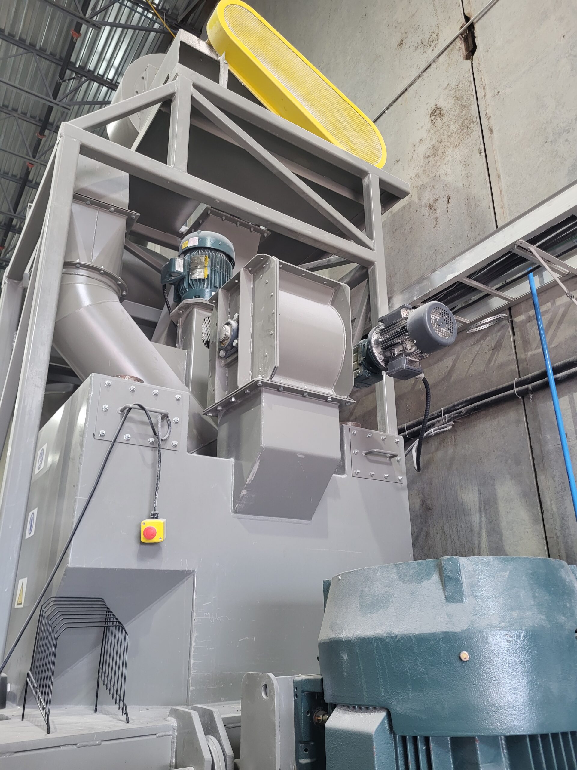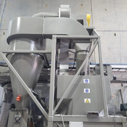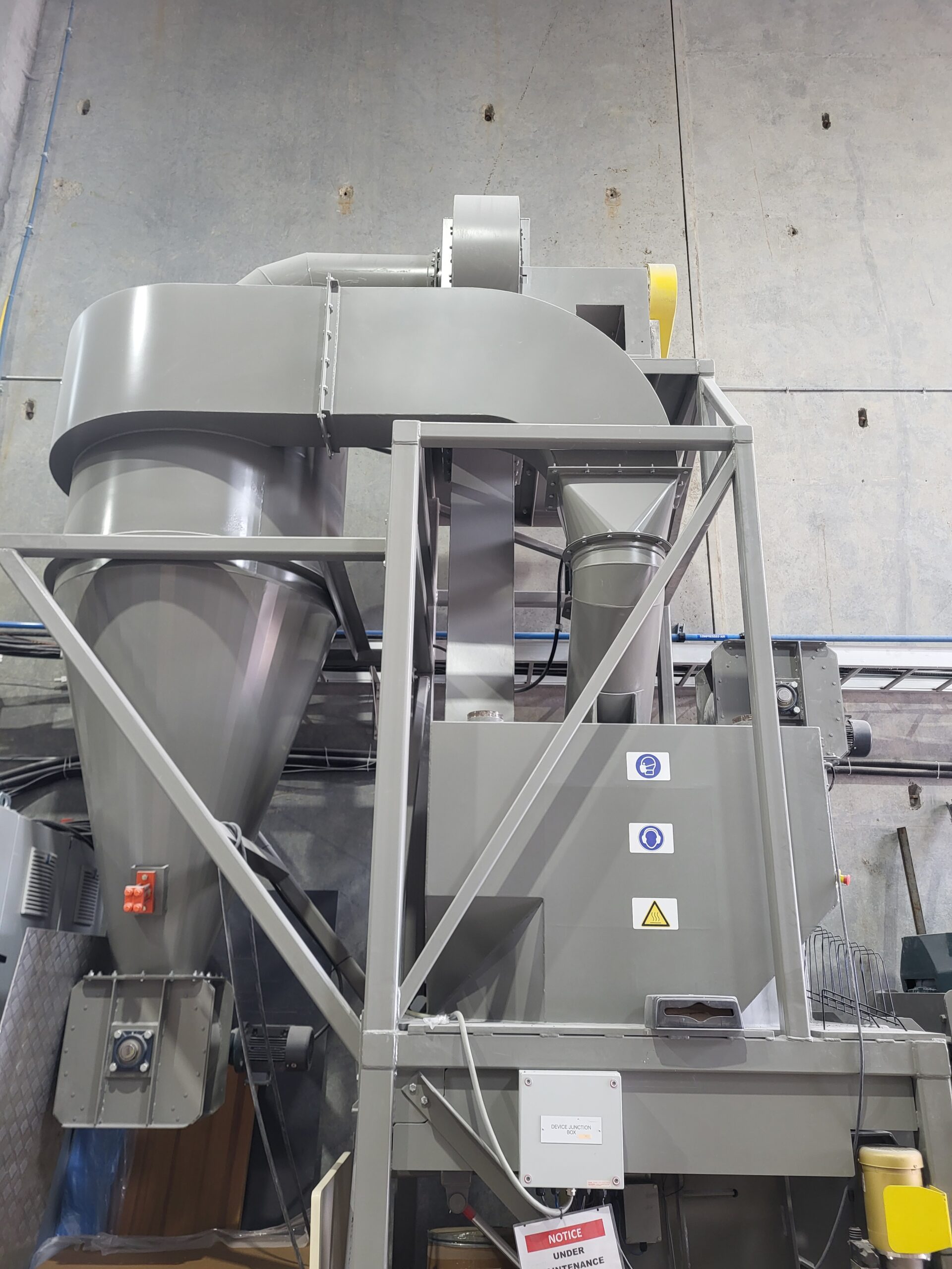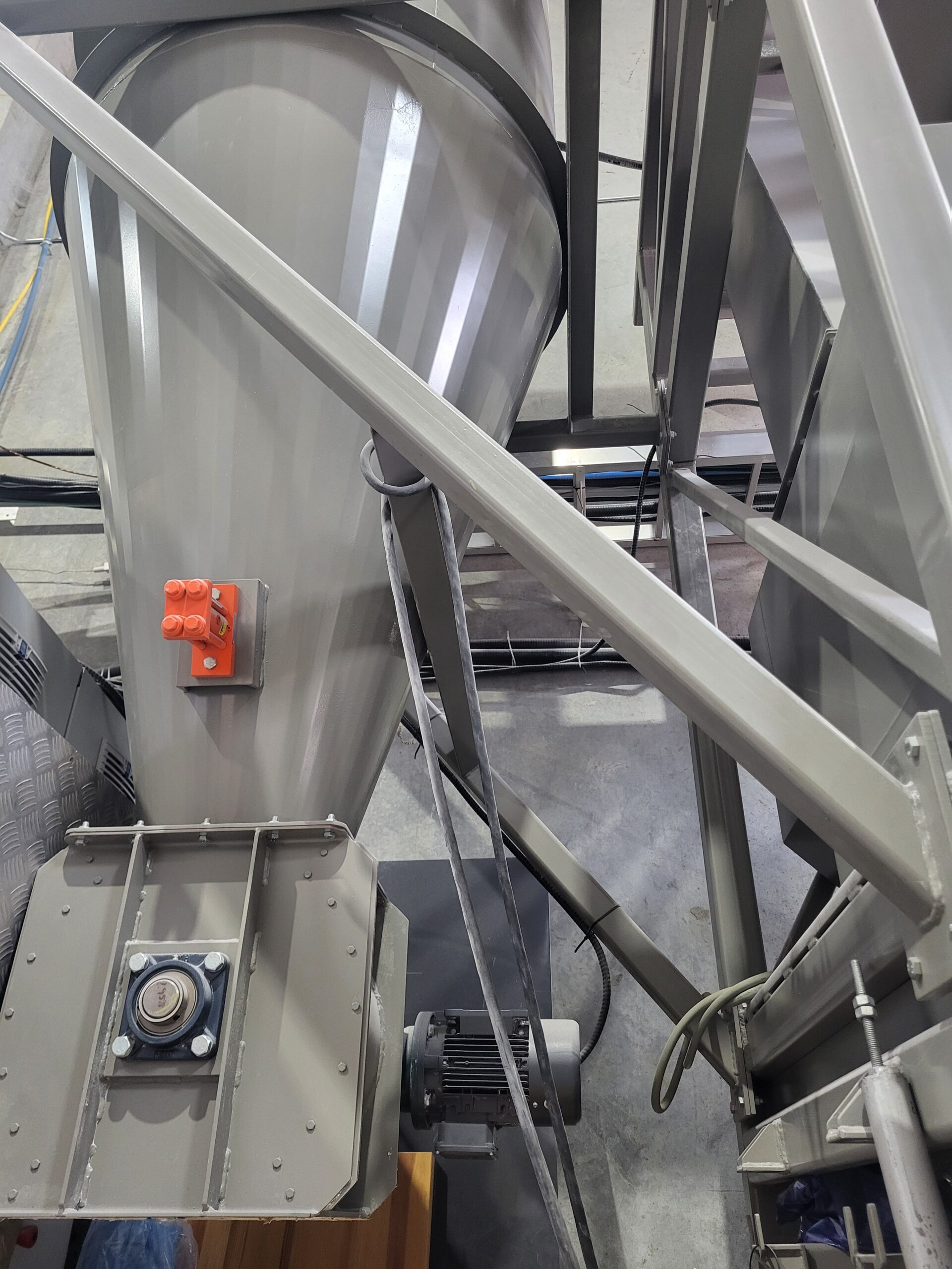 KDS Micronex Model S4 Grinder-Dryer. Capacity up to 1,000 kg/Hour. Includes Input Airlock, Cyclone Receiver, Outlet Airlock, Vibration Switch, Temperature Sensors, Zero Speed Switch and Relay. All-in-One System with 250 HP Baldor Motor
