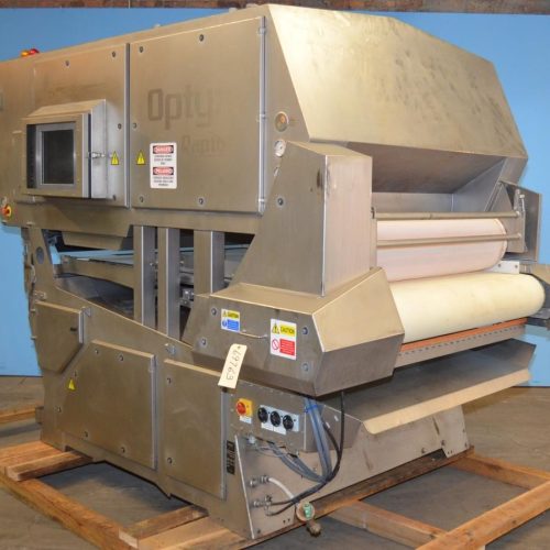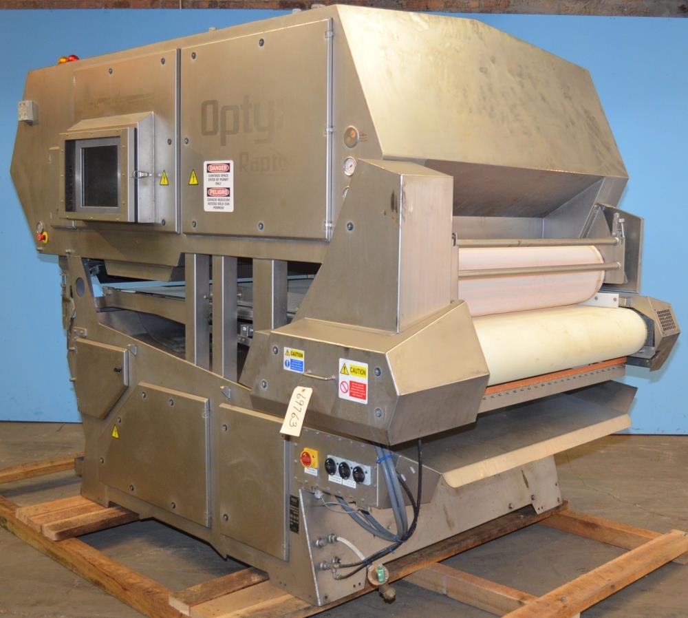 Key Optyx G6 Rapter Weldment Color Sorter, Model 061034138, 46 in W Belt Last Running: onions and can run many other products with programming from Key; Maximum Capacity 26,500 Pounds Per Hour. Two (2) high-resolution trichromatic image sensors positioned orthogonal to the belt for top-down, on belt viewing, Flat, quick release fabric belt, automatic pneumatic tensioned (white inverse diamond), Top of belt height 46 in, Scan width 1220 mm wide (48 in). Each camera scans 610 mm (24 in) resulting in 0.6 mm square pixels, Bed Modification Model 433595, S/N: 05-12989, Replace discharge section of shaker prior to the top deck manual slide gate, Discharge chute for top deck manual slide gate make shallower so second deck screen can be removed, ADD bolt-in screen to second deck and eliminate the manual slide gate, 47 7/8 In wide x 12 Ft long, #6 mesh, .063 wire, Add 6 Ft to discharge and narrowed to 46 In wide Shaker to feed 6000 Optyx KeyWare operator interface software, IntelliSort Object Oriented Sorting Technology, Proprietary, high intensity lighting system, Left-hand operator interface High-speed ejection module, 192 valves, 6 mm spacing, Includes Raptor weldment such that laser can be incorporated at later date, Note – no laser electronics or components will be included, Includes product stabilizer, Includes bottom camera window wiper CIP Includes Diced Onion 2.01 KeyWare, Includes Dry CIP system. Compact housing, inclusive of 480/60/3 phase power and controls, 40 amp, G6 controller with touch screen interface and Ethernet connectivity. Includes Key Iso Flo Model S1034139, 10 ft 8 in L x 48 in W Stainless Steel 2-Tier Vibratory Conveyor, 7 in Stroke, with (3) different size sifting screens including 7/16 in and 1 in Diameter Round and 1 in x 1 in Square, S/N 43209102824. 9,000 lbs/hr Frozen 3/8 In Peeled Diced Onions