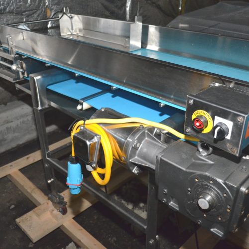 Kleenline 24 in W x 6 ft Long Straight Flat Rubber Sanitary Belt Conveyor. 6 in H S/S Side Rails. Belt Height Set at 40 Inches. S/S Frame and Motor. Height Adjustable Feet (approx. 4 in), Mounted on Casters. 1/2 HP. 208-230/460 V, 3 Ph, 60 Hz.