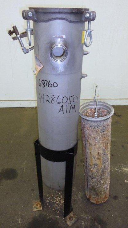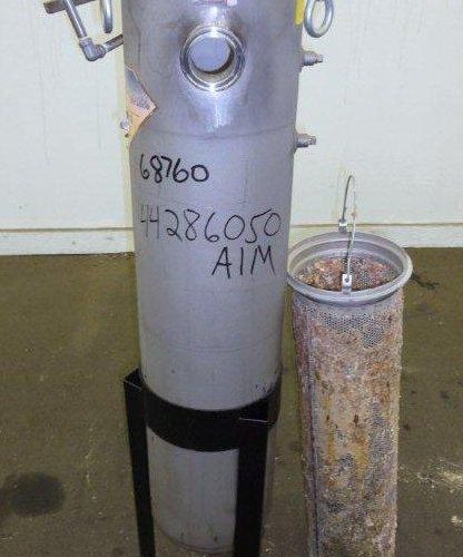Krystil Klear Filtration Model 8830 39 in L x 8 in Diameter 316 S/S Filter Housing. 150 PSI at 300 Degrees F, 2 in Diameter Threaded Inlet and Outlet, Screw Down Cover Mounted on C/S Stand.