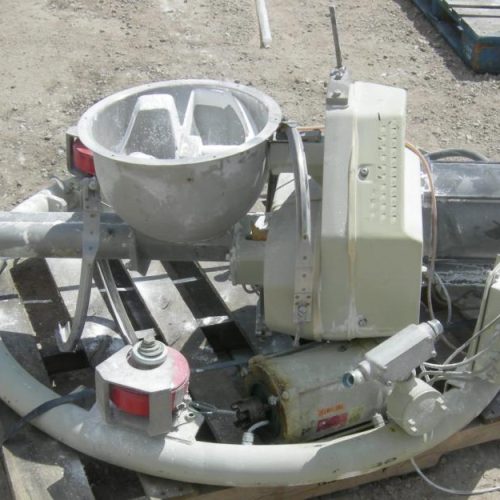 Ktron Modular loww in weight systems consisting of: (2) Ktron Mdl K2MLT60 S/S twin screw type modular loss in weight feeders, Twin screw design, driven by a 1 1/2 hp,180/200 volt,1750 rpm XP DC motor, approx 4000 pound an hour capacity. Includes 36 in dia x 30 in deep coned top feed hopper with agitator, driven by a 1hp motor, 13 in diameter trough with agitator, weigh bridge. Gravimetric feeding of free flowing to very poorly flowing powders (e.g. lumpy, moist or bridge building materials) as well as fibers, flakes and other bulk materials. Design Twin screw feeder with interchangeable feeding tools suspended in a threepoint weighing system. All parts in contact with the material being fed are stainless steel. Feeding equipment is easy to disassemble. The modular components are held together by V-clamps. By opening the V-clamp on the lower hopper end by tool, the feeder will swing out for easy cleaning. The horizontal agitator gently moves bulk material to the large throat and then into the discharge screws. It is removable without tools. The horizontal agitator speed totals 5% of the screw speed.